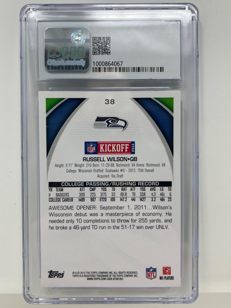 Lot # 60 - Russell Wilson Topps Kickoff 2012 CSG Graded 8.5