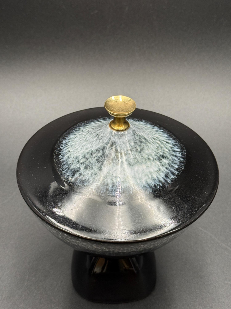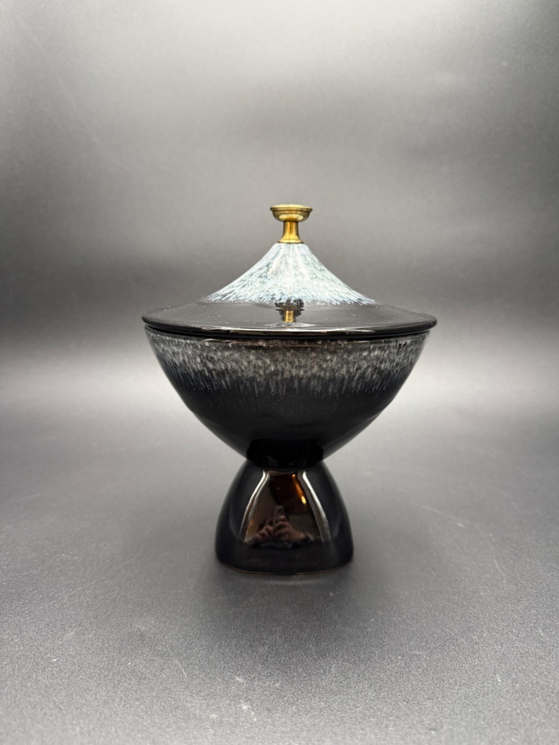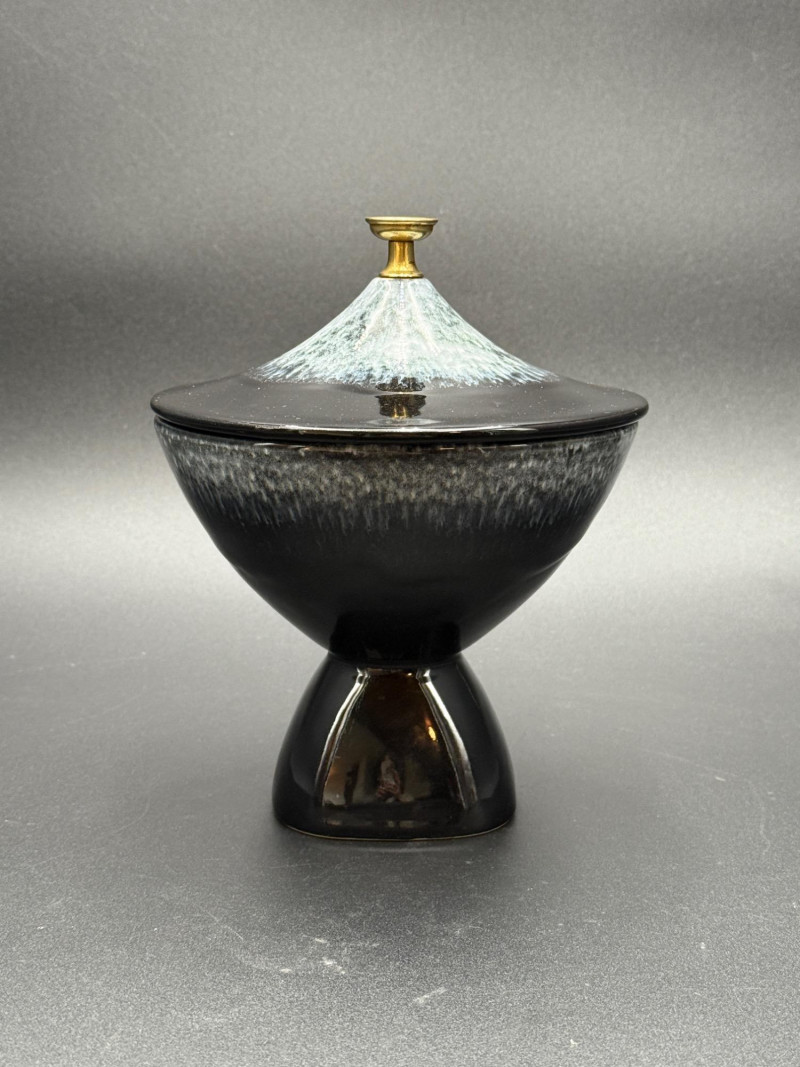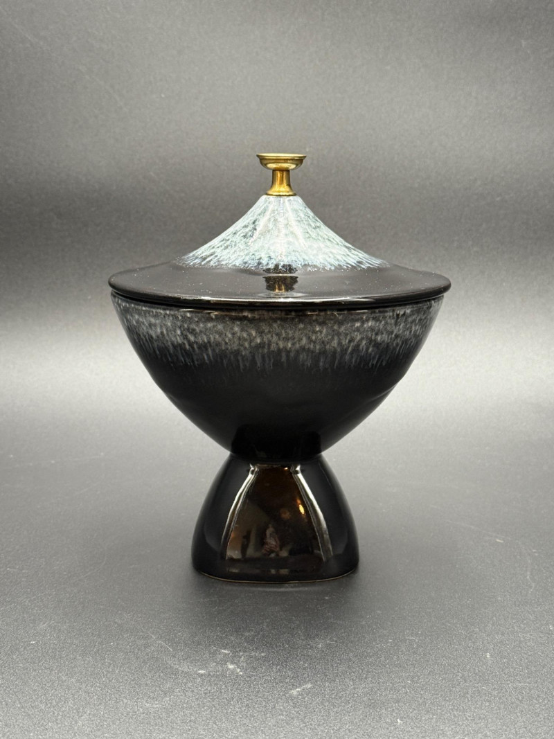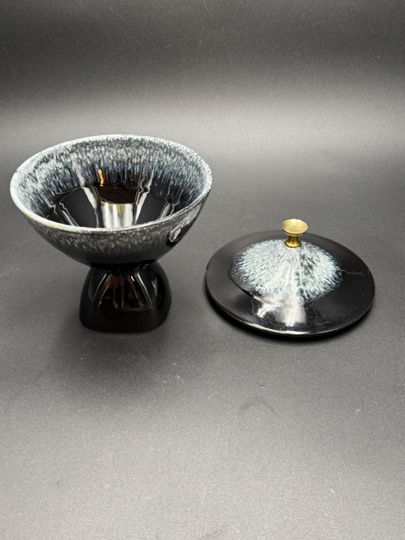 MCM Pottery Black Drip Lidded Candy Dish. Great condition.