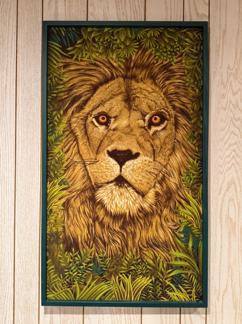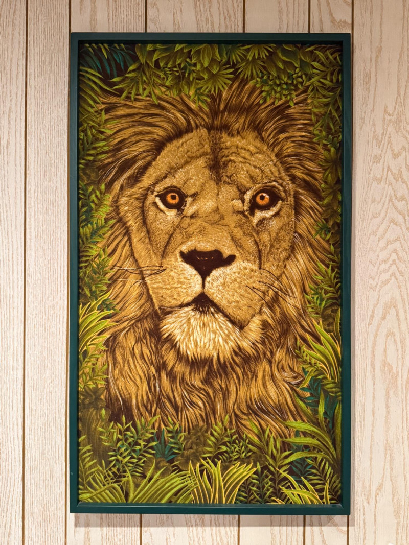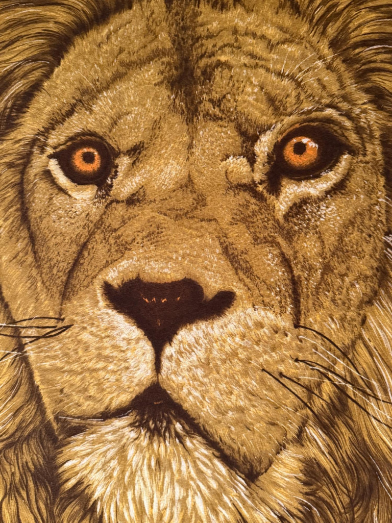Vintage Wesco-Reltex Lion Framed Tapestry-Hanging Sewing Panel. 43" Tall x 25" W