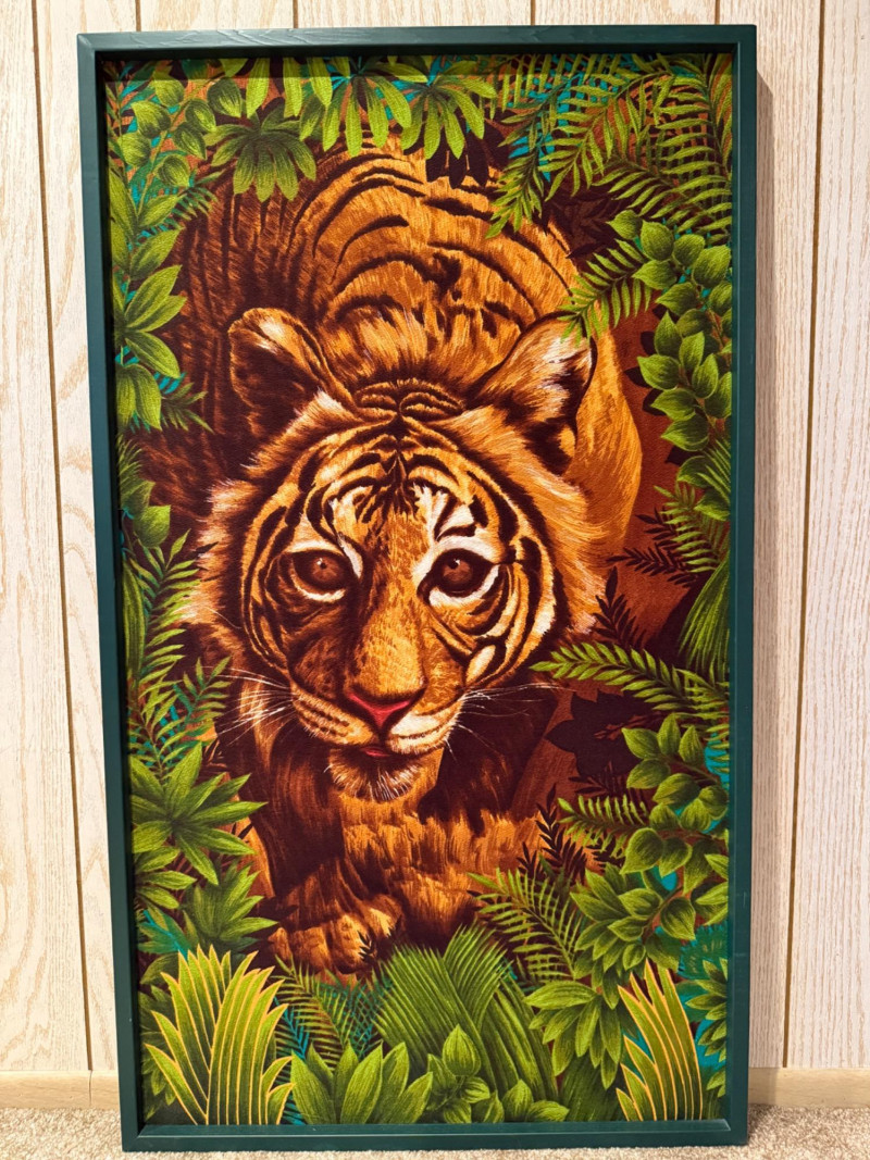 Vintage Wesco-Reltex Tiger Framed Tapestry-Hanging Sewing Panel. 43" Tall x 25" W