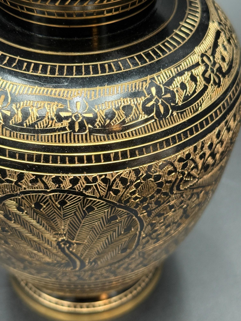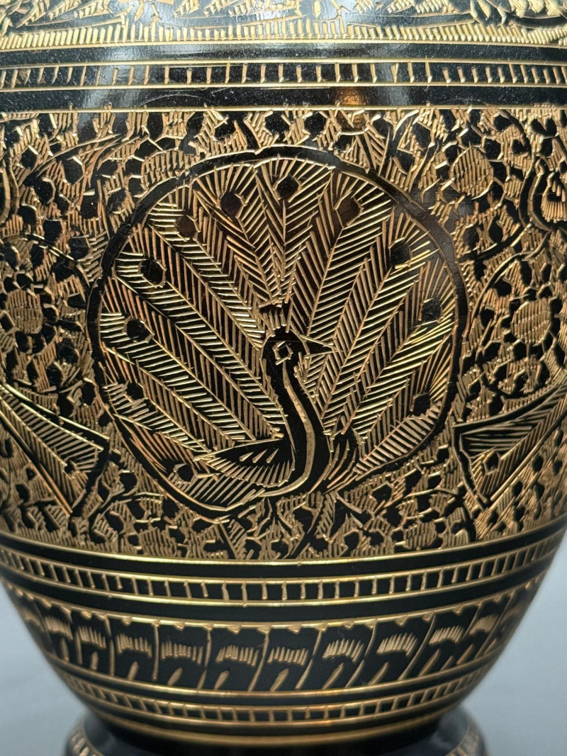 Lot # 52 - Vintage Hand Etched Peacock India Brass Vase