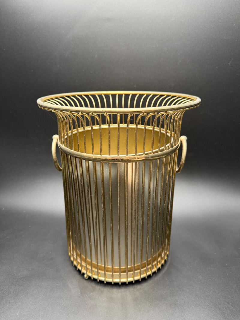 1960s Gold Wire Handled Waste Basket-Hollywood Regency Style 10" x 12" Tall Removable bucket.