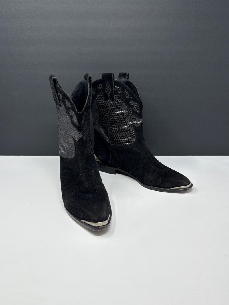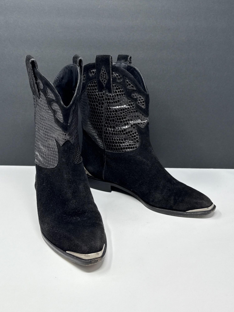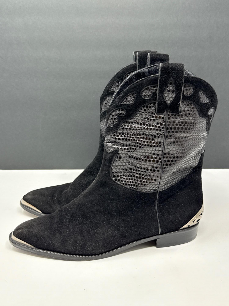 Vintage STUART WEITZMAN Black Leather Cowboy Boots- Sz 7 PLEASE NOTE DIFFERENT PICKUP TIMES THAN TYPICAL FOR SOUND ESTATE AUCTIONS Pickups will be Wednesday, July 30th and Thursday, July 31st, Saturday, August 2nd from 4-6pm (firm by 6pm on Thursday) If you can not make these times, PLEASE ask for alternate available times or shipping. Shipping times will be up to 2 weeks after auction closes. Please call/text Jessica 253-350-0864 *All items will need to be collected by August 15