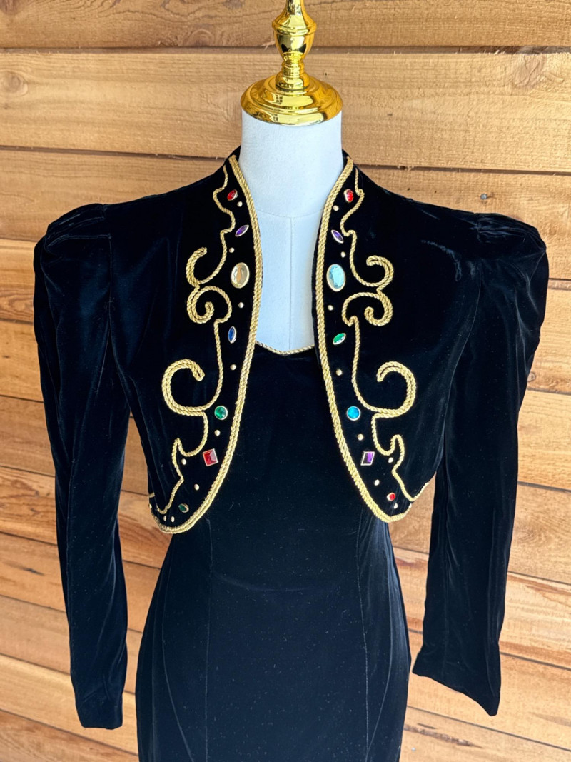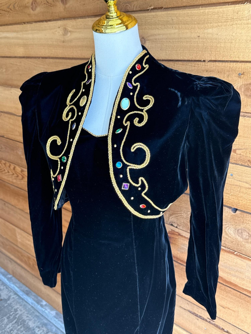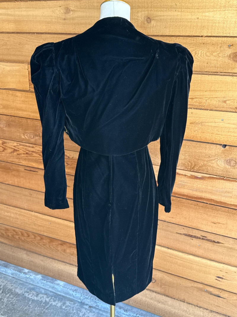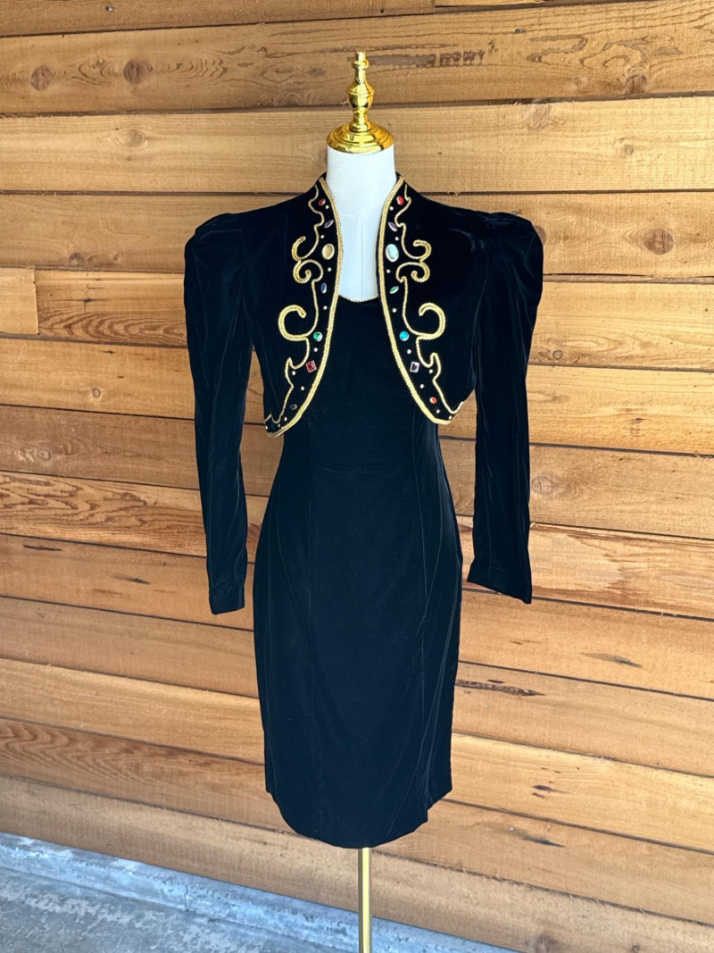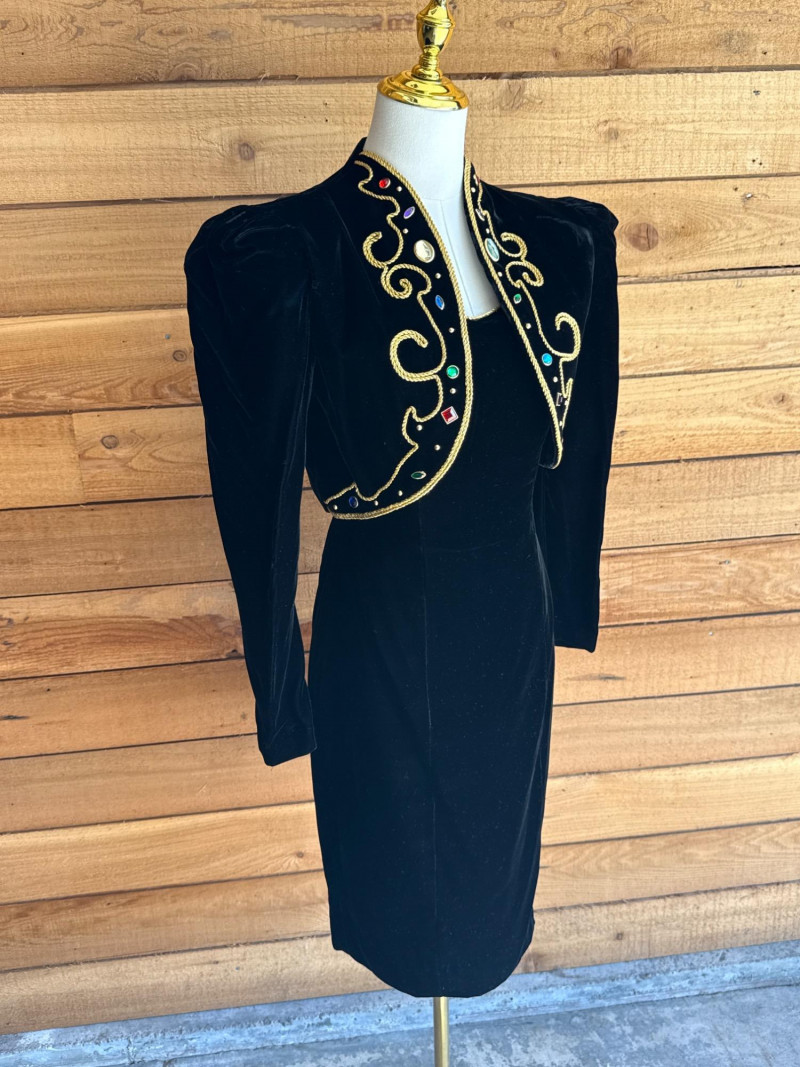 Lot # 18 - Vintage NIGHTWAY Black Velvet Bejeweled Dress & Jacket- Sz 4