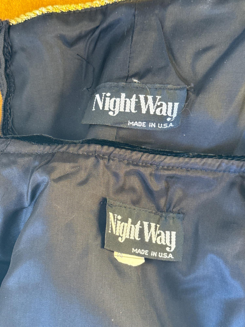 Vintage NIGHTWAY Black Velvet Bejeweled Dress & Jacket- Sz 4 PLEASE NOTE DIFFERENT PICKUP TIMES THAN TYPICAL FOR SOUND ESTATE AUCTIONS Pickups will be Wednesday, July 30th and Thursday, July 31st, Saturday, August 2nd from 4-6pm (firm by 6pm on Thursday) If you can not make these times, PLEASE ask for alternate available times or shipping. Shipping times will be up to 2 weeks after auction closes. Please call/text Jessica 253-350-0864 *All items will need to be collected by August 15