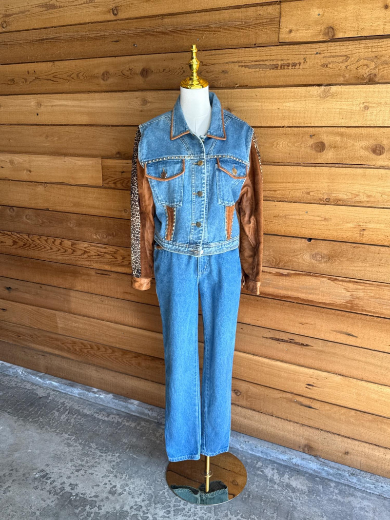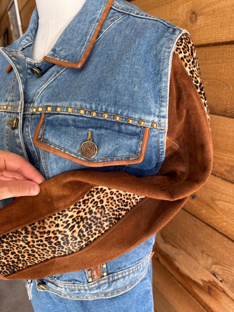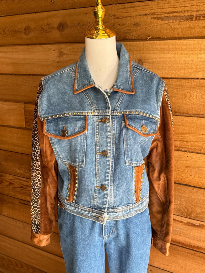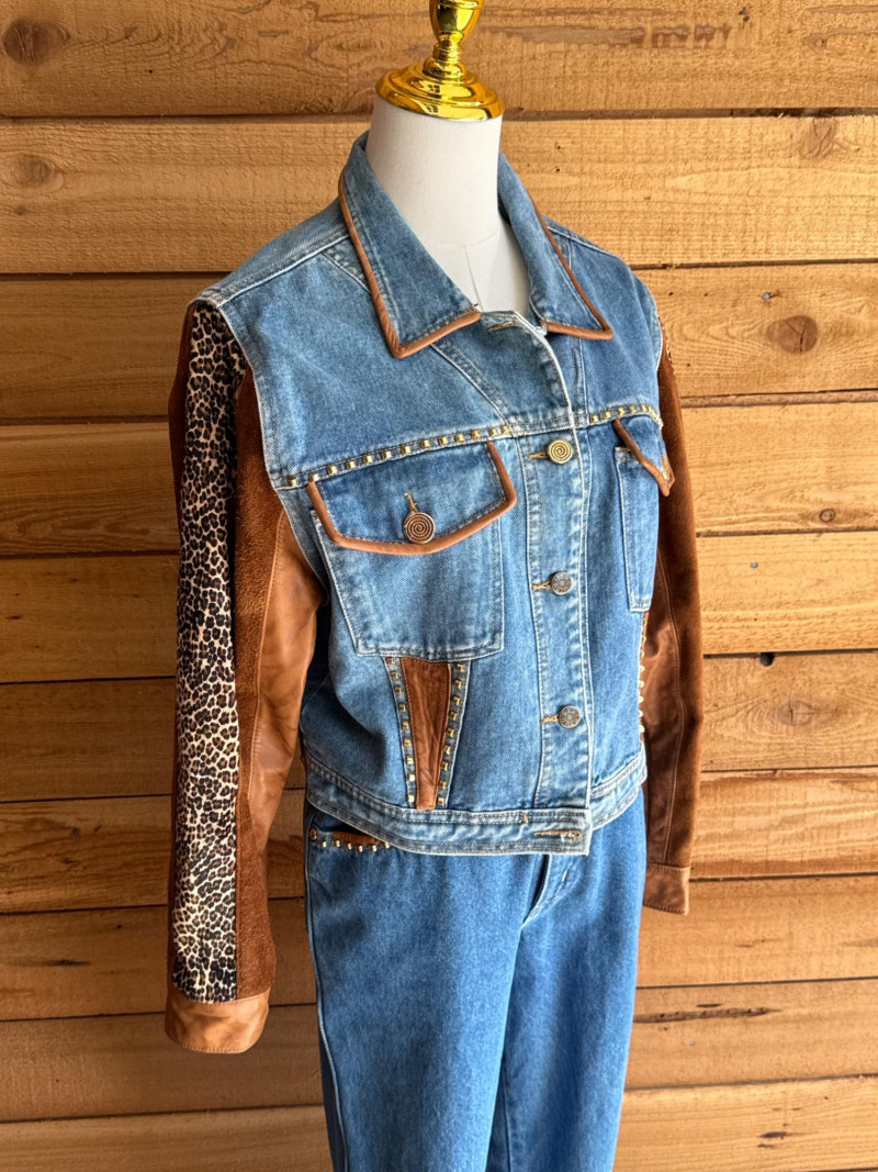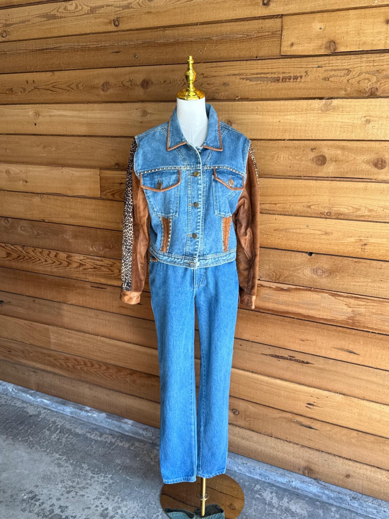 Lot # 22 - Vintage CACHE Leopard Leather & Denim 2 Pc- Sz S/6