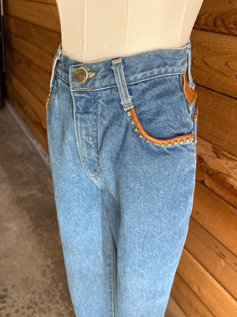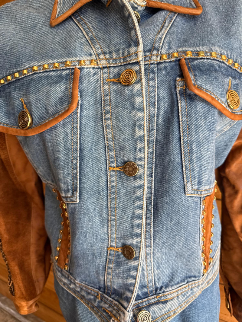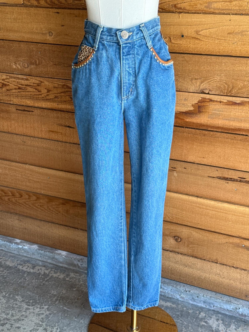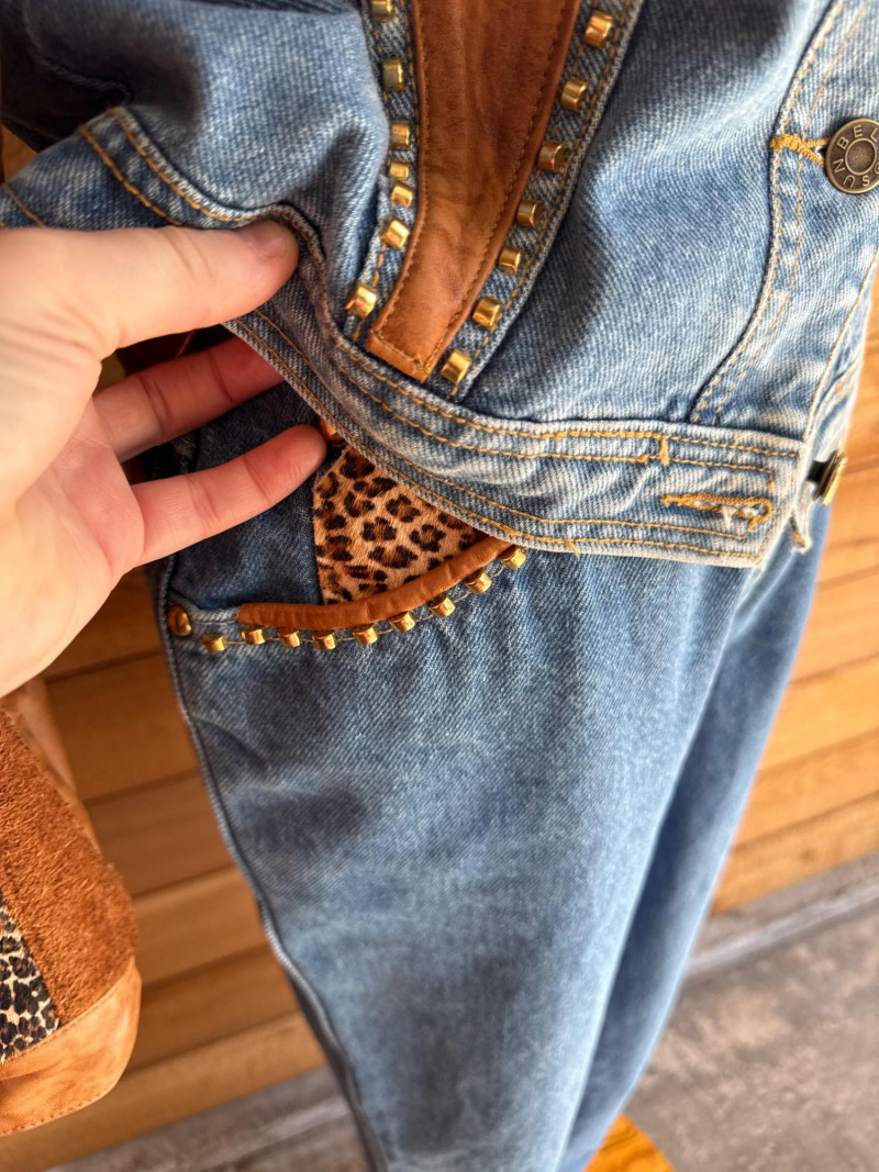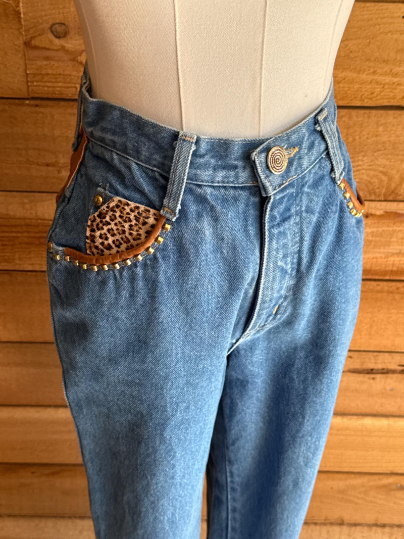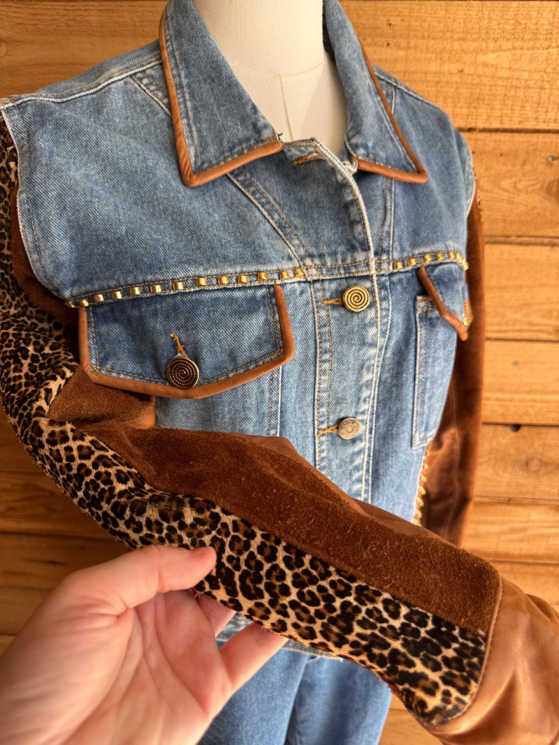 Lot # 22 - Vintage CACHE Leopard Leather & Denim 2 Pc- Sz S/6