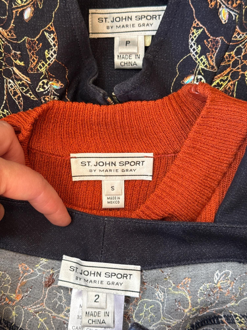ST JOHN Sport 3pc Beaded Denim Outfit- Sz S/2/P PLEASE NOTE DIFFERENT PICKUP TIMES THAN TYPICAL FOR SOUND ESTATE AUCTIONS Pickups will be Wednesday, July 30th and Thursday, July 31st, Saturday, August 2nd from 4-6pm (firm by 6pm on Thursday) If you can not make these times, PLEASE ask for alternate available times or shipping. Shipping times will be up to 2 weeks after auction closes. Please call/text Jessica 253-350-0864 *All items will need to be collected by August 15