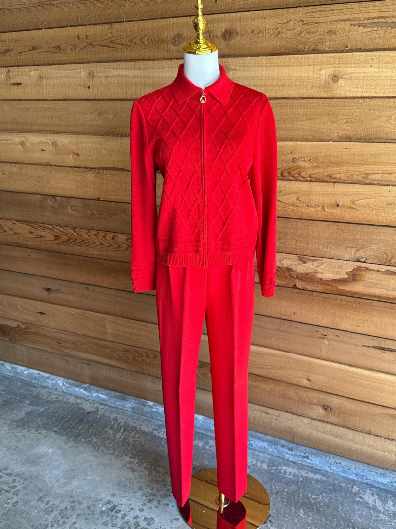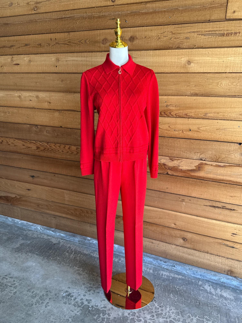 Lot # 26 - ST JOHN Red Knit Pant Set- Sz 2/P