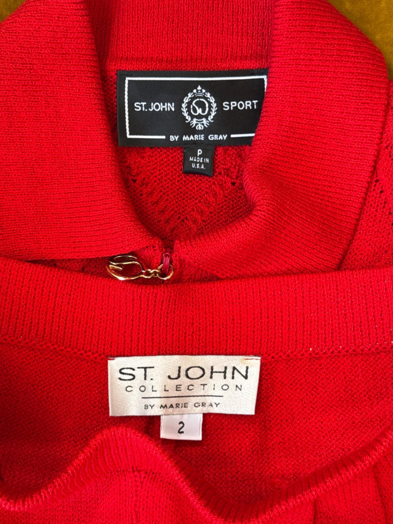 ST JOHN Red Knit Pant Set- Sz 2/P PLEASE NOTE DIFFERENT PICKUP TIMES THAN TYPICAL FOR SOUND ESTATE AUCTIONS Pickups will be Wednesday, July 30th and Thursday, July 31st, Saturday, August 2nd from 4-6pm (firm by 6pm on Thursday) If you can not make these times, PLEASE ask for alternate available times or shipping. Shipping times will be up to 2 weeks after auction closes. Please call/text Jessica 253-350-0864 *All items will need to be collected by August 15
