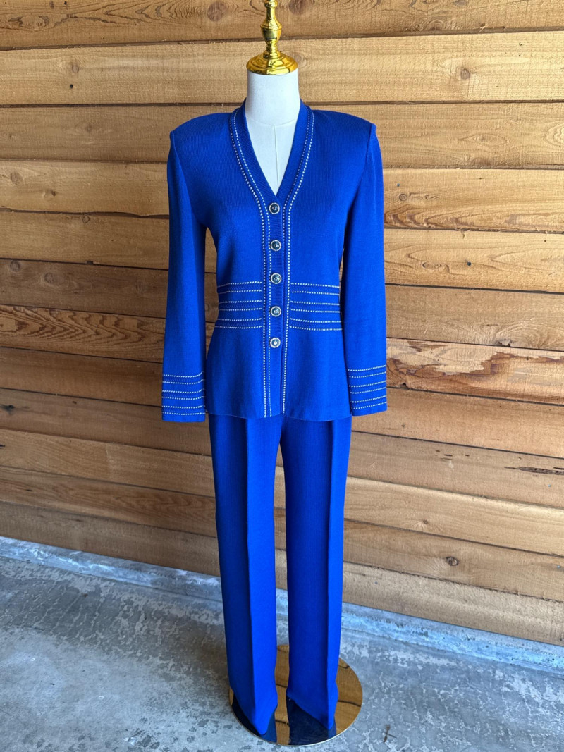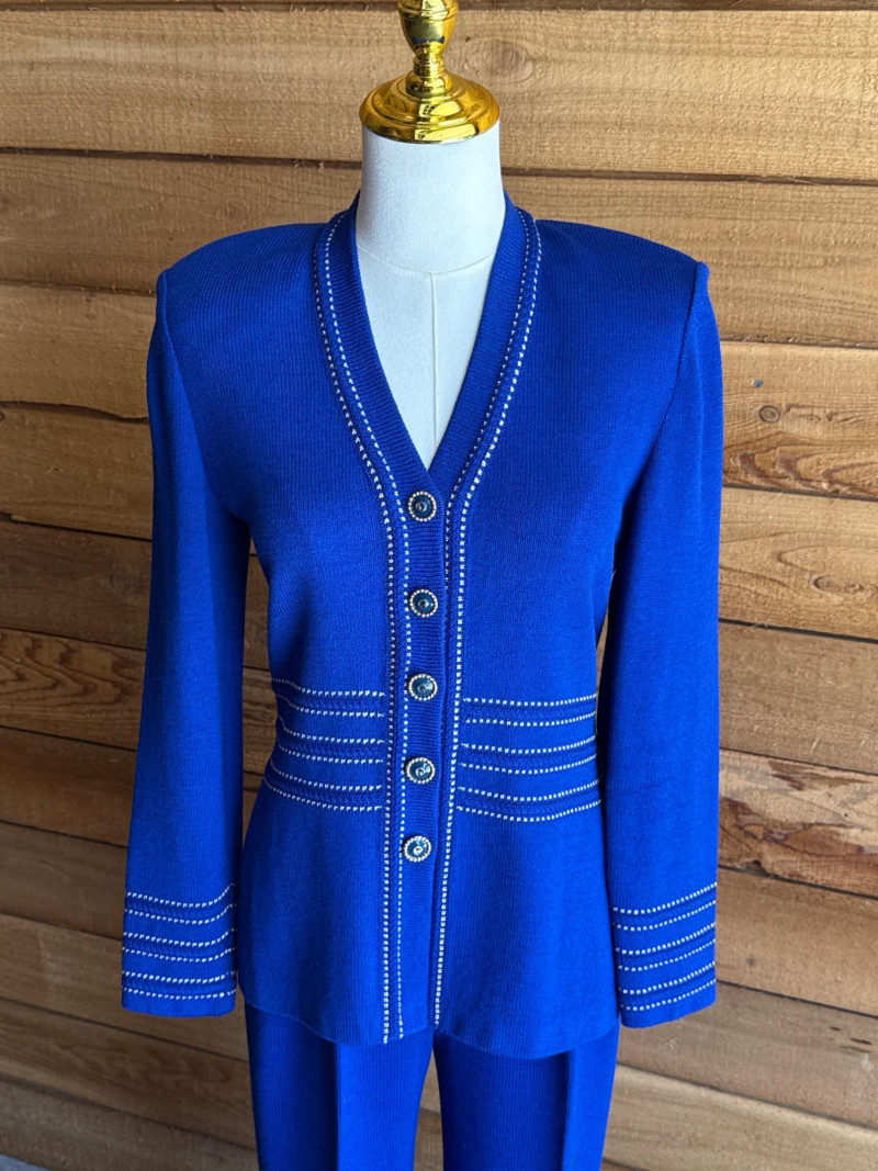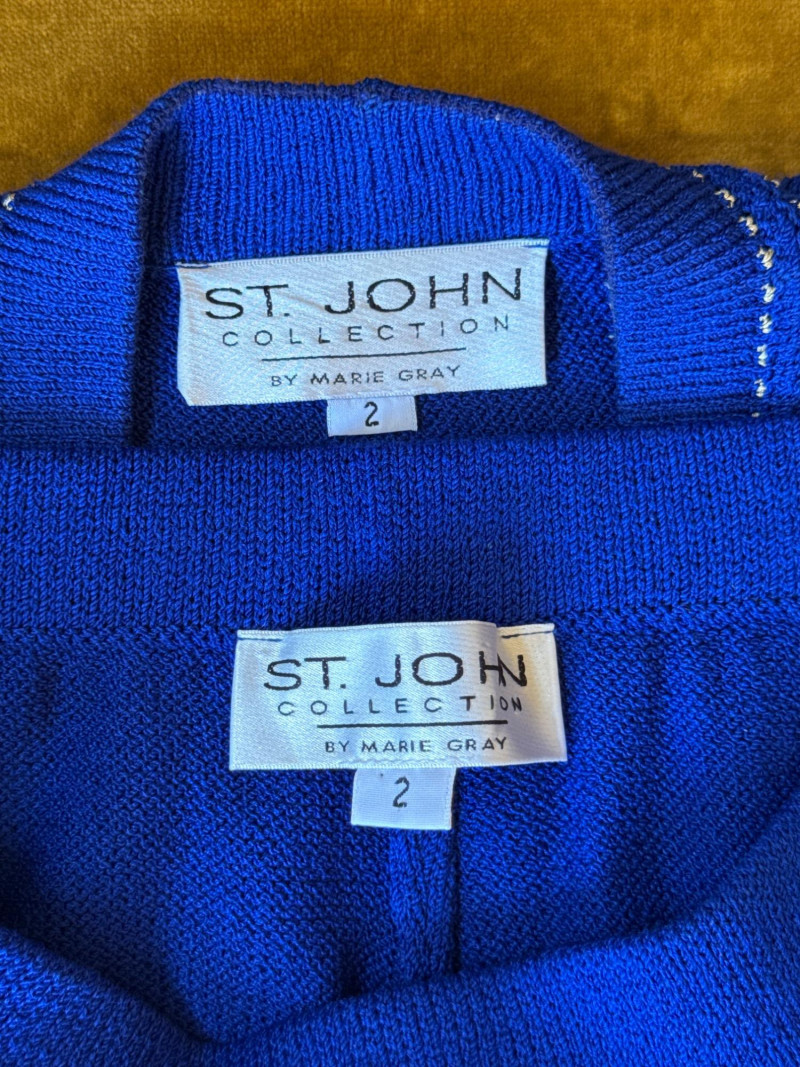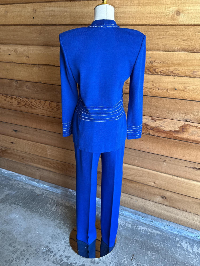 ST JOHN Royal Blue Knit Pant Suit- Sz 2 *note have slight spotting see photo- may come out in laundry? PLEASE NOTE DIFFERENT PICKUP TIMES THAN TYPICAL FOR SOUND ESTATE AUCTIONS Pickups will be Wednesday, July 30th and Thursday, July 31st, Saturday, August 2nd from 4-6pm (firm by 6pm on Thursday) If you can not make these times, PLEASE ask for alternate available times or shipping. Shipping times will be up to 2 weeks after auction closes. Please call/text Jessica 253-350-0864 *All items will need to be collected by August 15
