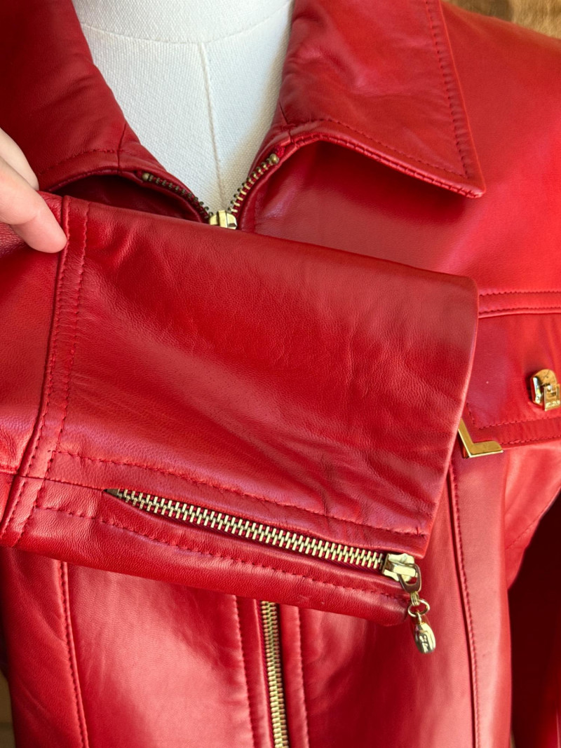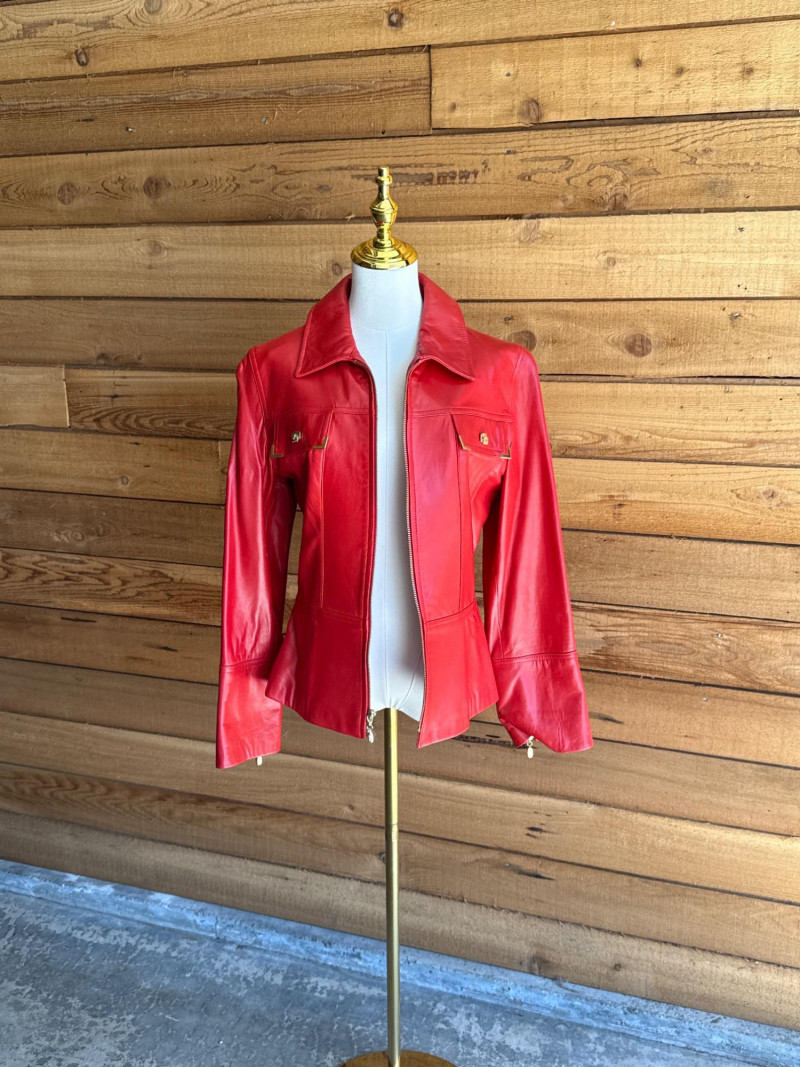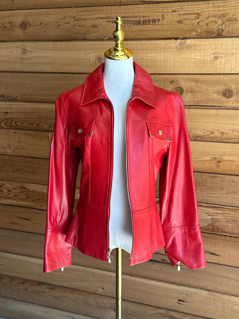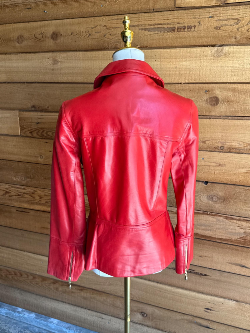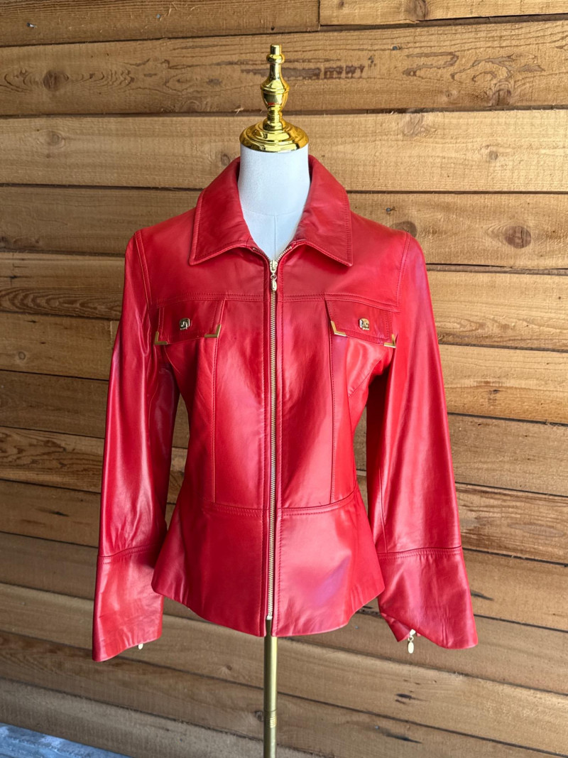Lot # 34 - ST JOHN Coat Collection Red Leather Jacket- Sz S
