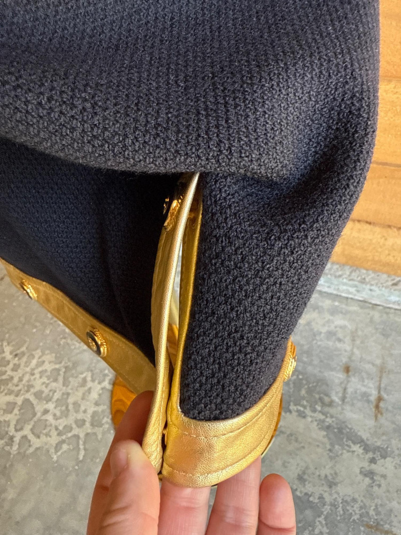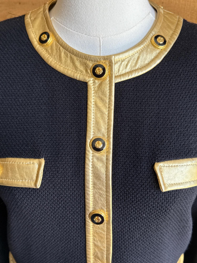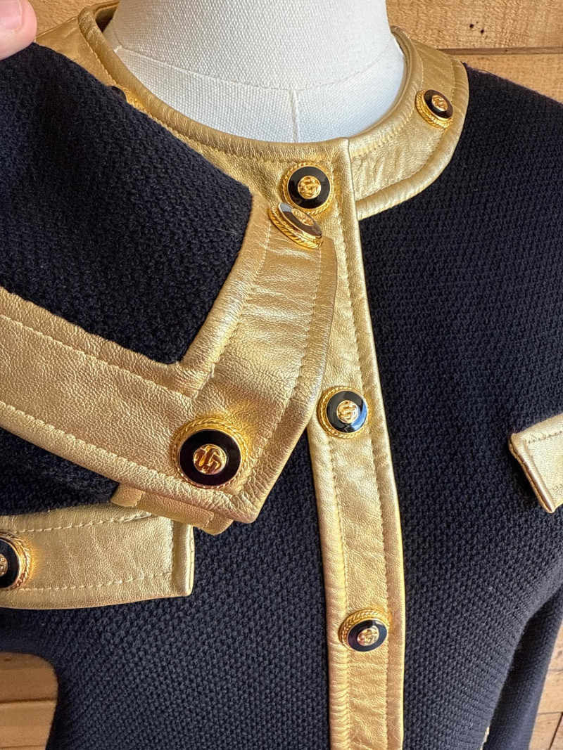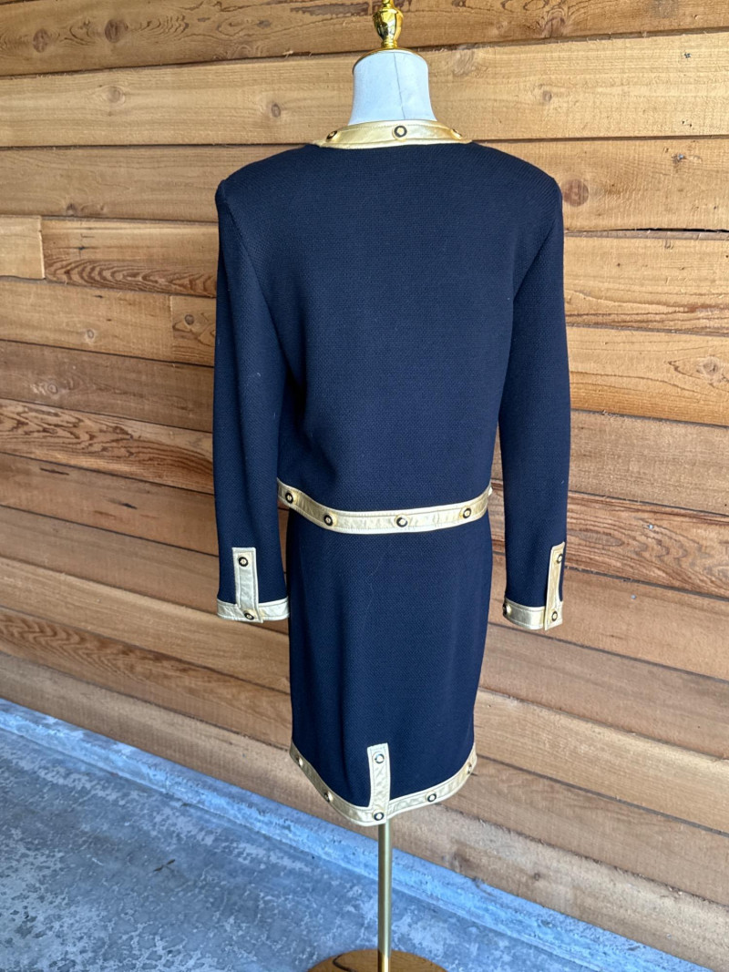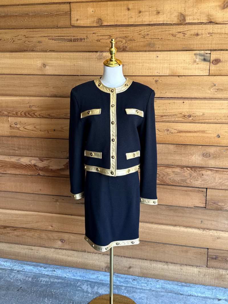 Lot # 48 - ST JOHN Black & Gold Skirt Suit w/ Leather Trim- Sz 8