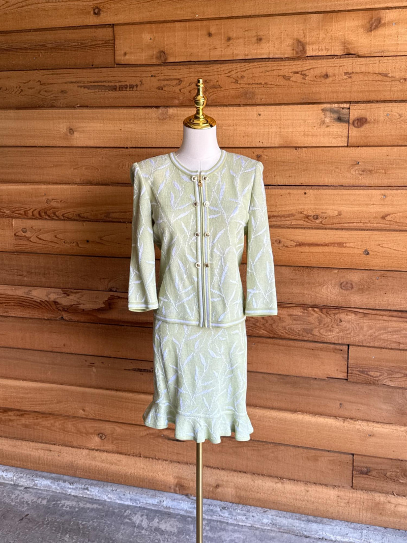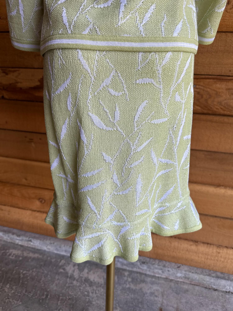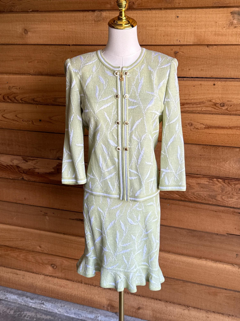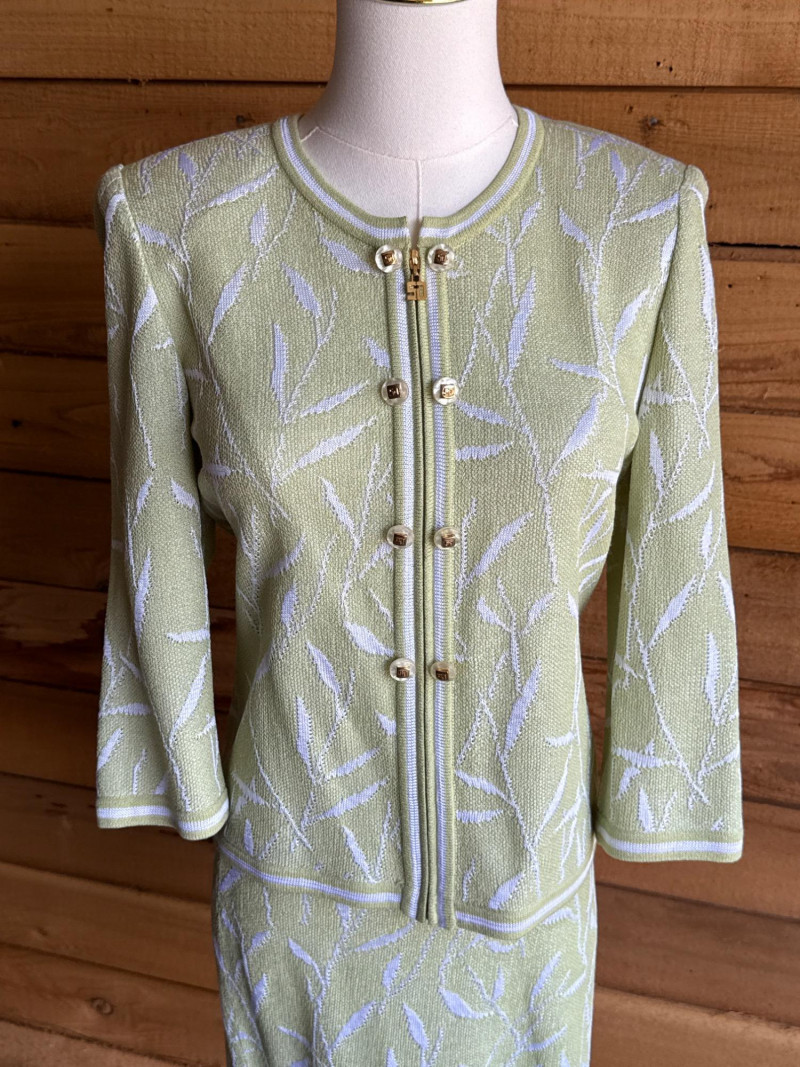 Lot # 54 - ST JOHN Green Ivory Skirt Suit *NWT $1170- Sz 2