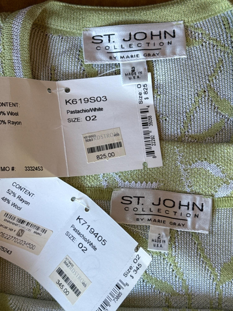ST JOHN Green Ivory Skirt Suit *NWT $1170- Sz 2 PLEASE NOTE DIFFERENT PICKUP TIMES THAN TYPICAL FOR SOUND ESTATE AUCTIONS Pickups will be Wednesday, July 30th and Thursday, July 31st, Saturday, August 2nd from 4-6pm (firm by 6pm on Thursday) If you can not make these times, PLEASE ask for alternate available times or shipping. Shipping times will be up to 2 weeks after auction closes. Please call/text Jessica 253-350-0864 *All items will need to be collected by August 15