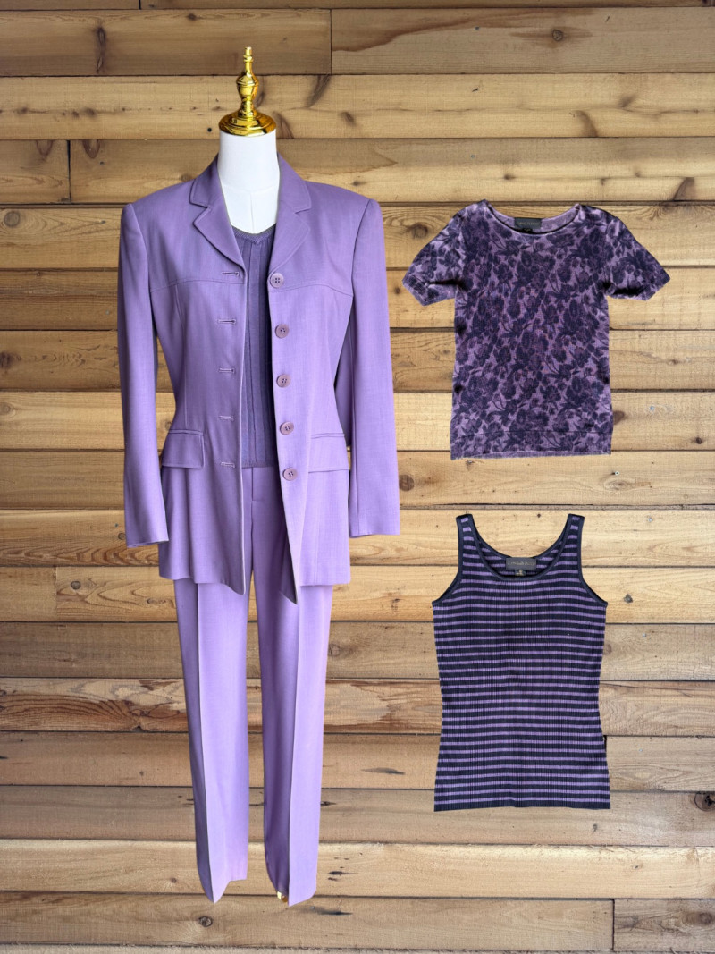 CLASSIQUES ENTIER Purple Pant Suit & 3 Tee/Tanks- Sz S/4 PLEASE NOTE DIFFERENT PICKUP TIMES THAN TYPICAL FOR SOUND ESTATE AUCTIONS Pickups will be Wednesday, July 30th and Thursday, July 31st, Saturday, August 2nd from 4-6pm (firm by 6pm on Thursday) If you can not make these times, PLEASE ask for alternate available times or shipping. Shipping times will be up to 2 weeks after auction closes. Please call/text Jessica 253-350-0864 *All items will need to be collected by August 15