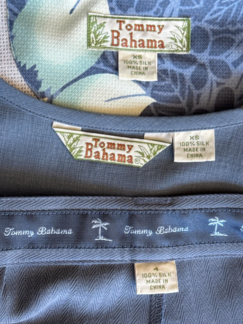 TOMMY BAHAMA Blue Silk 3pc Short Set- Sz XS/4 PLEASE NOTE DIFFERENT PICKUP TIMES THAN TYPICAL FOR SOUND ESTATE AUCTIONS Pickups will be Wednesday, July 30th and Thursday, July 31st, Saturday, August 2nd from 4-6pm (firm by 6pm on Thursday) If you can not make these times, PLEASE ask for alternate available times or shipping. Shipping times will be up to 2 weeks after auction closes. Please call/text Jessica 253-350-0864 *All items will need to be collected by August 15