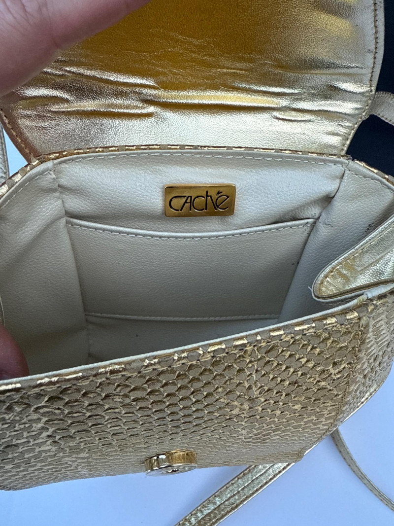 Vintage CACHE Gold Box Purse w/ Metal Hardware PLEASE NOTE DIFFERENT PICKUP TIMES THAN TYPICAL FOR SOUND ESTATE AUCTIONS Pickups will be Wednesday, July 30th and Thursday, July 31st, Saturday, August 2nd from 4-6pm (firm by 6pm on Thursday) If you can not make these times, PLEASE ask for alternate available times or shipping. Shipping times will be up to 2 weeks after auction closes. Please call/text Jessica 253-350-0864 *All items will need to be collected by August 15