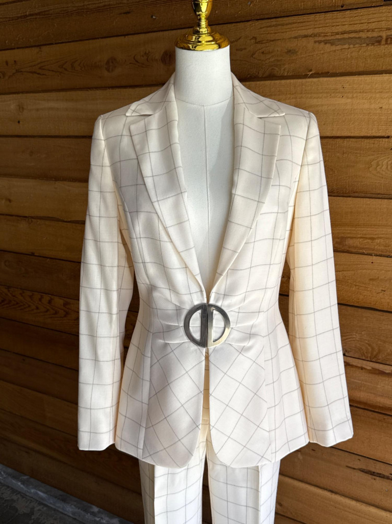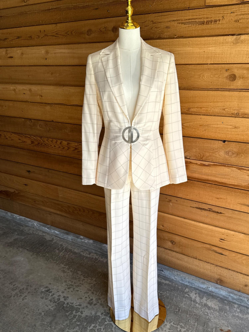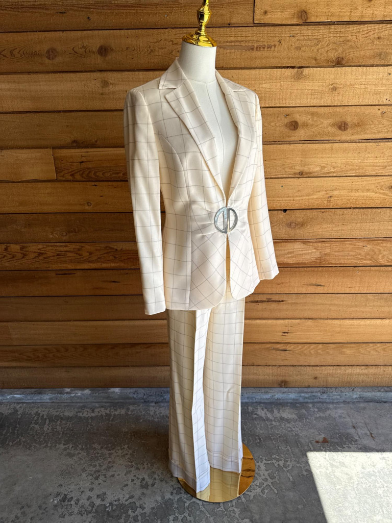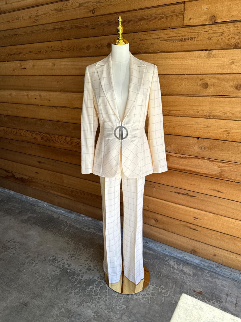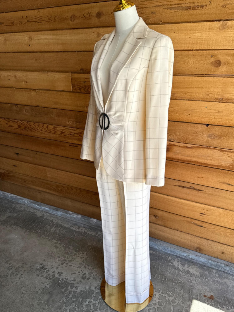 Lot # 109 - CLASSIQUES ENTIER Ivory & Black Windowpane Checked Pant Suit- Sz 4