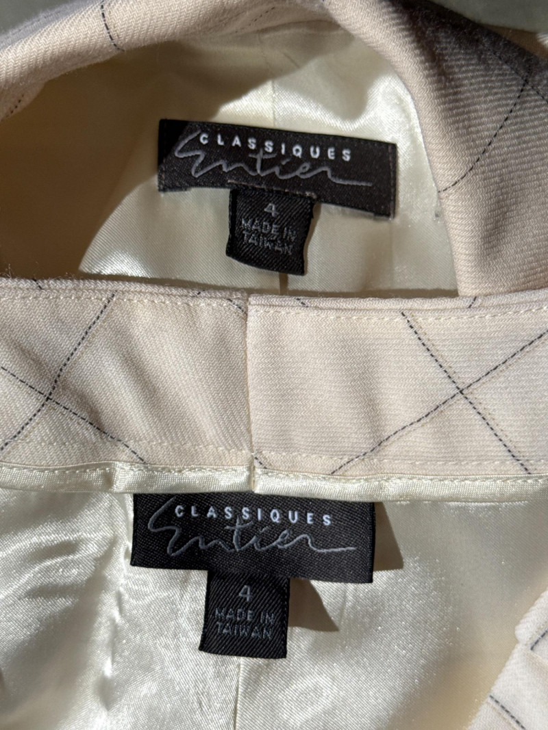 CLASSIQUES ENTIER Ivory & Black Windowpane Checked Pant Suit- Sz 4 PLEASE NOTE DIFFERENT PICKUP TIMES THAN TYPICAL FOR SOUND ESTATE AUCTIONS Pickups will be Wednesday, July 30th and Thursday, July 31st, Saturday, August 2nd from 4-6pm (firm by 6pm on Thursday) If you can not make these times, PLEASE ask for alternate available times or shipping. Shipping times will be up to 2 weeks after auction closes. Please call/text Jessica 253-350-0864 *All items will need to be collected by August 15