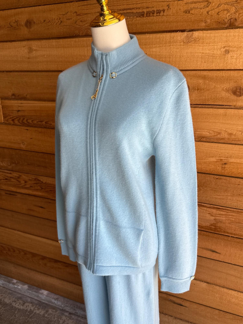Lot # 124 - ST JOHN Blue Cashmere Pant Set- Sz P