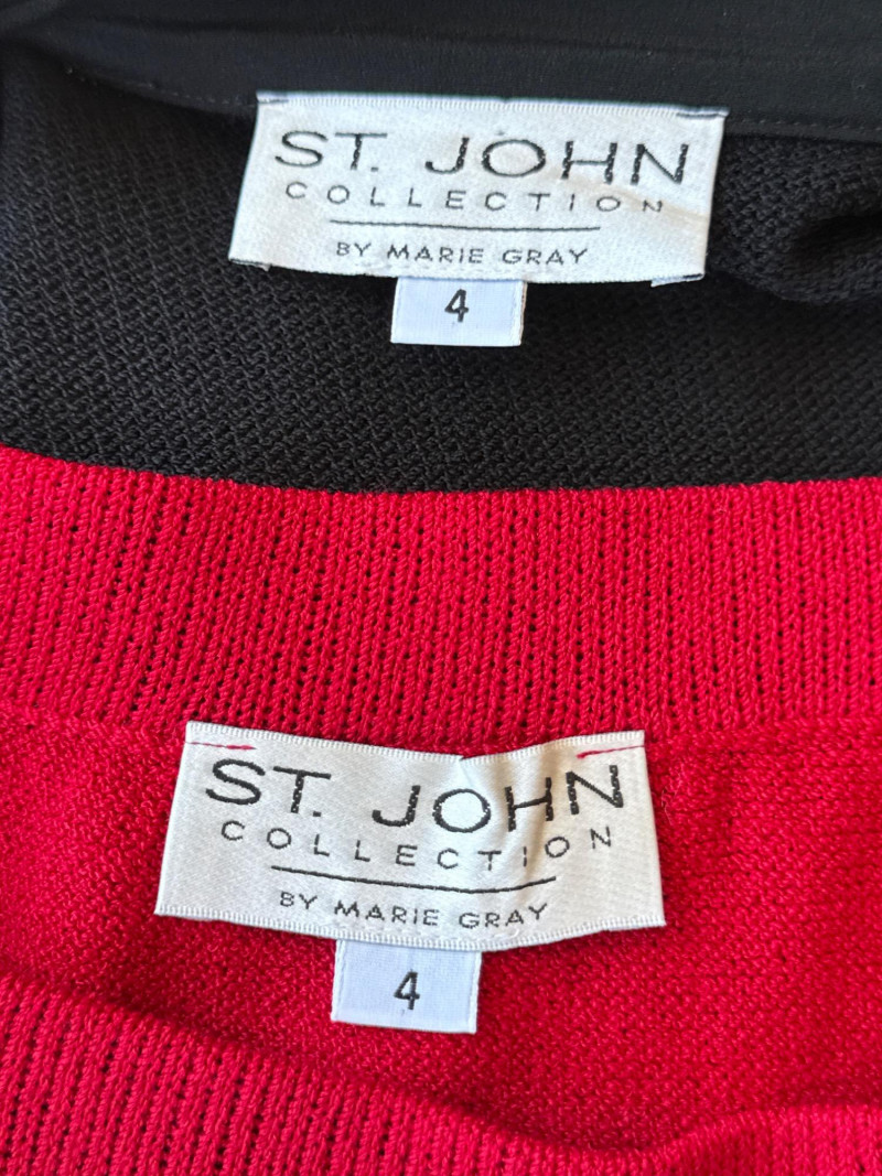 ST JOHN Black & Red Skirt Suit- Sz 4 Jacket has a spot that appears to once have had a brooch or the like pinned? PLEASE NOTE DIFFERENT PICKUP TIMES THAN TYPICAL FOR SOUND ESTATE AUCTIONS Pickups will be Wednesday, July 30th and Thursday, July 31st, Saturday, August 2nd from 4-6pm (firm by 6pm on Thursday) If you can not make these times, PLEASE ask for alternate available times or shipping. Shipping times will be up to 2 weeks after auction closes. Please call/text Jessica 253-350-0864 *All items will need to be collected by August 15