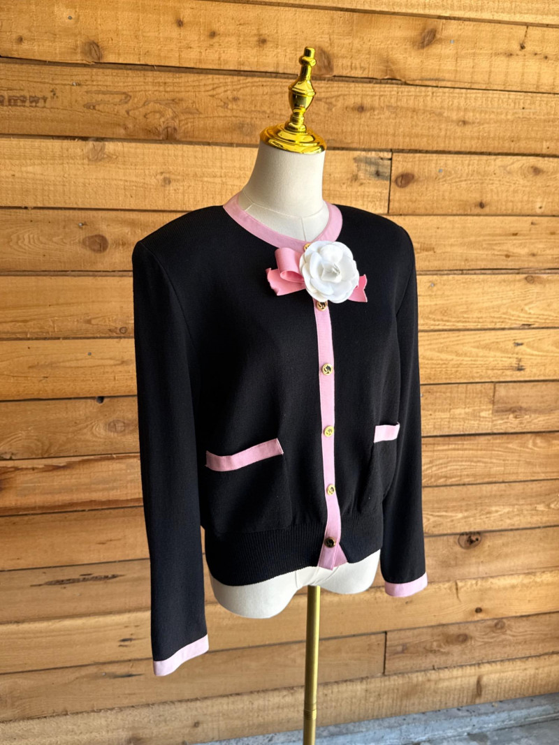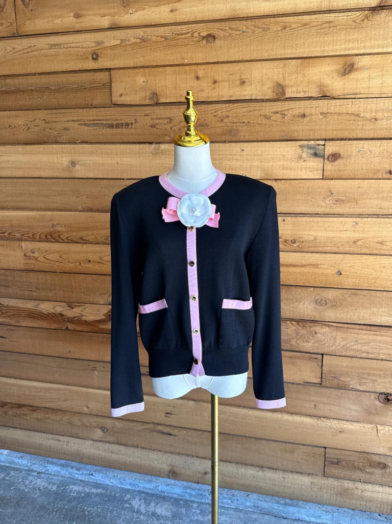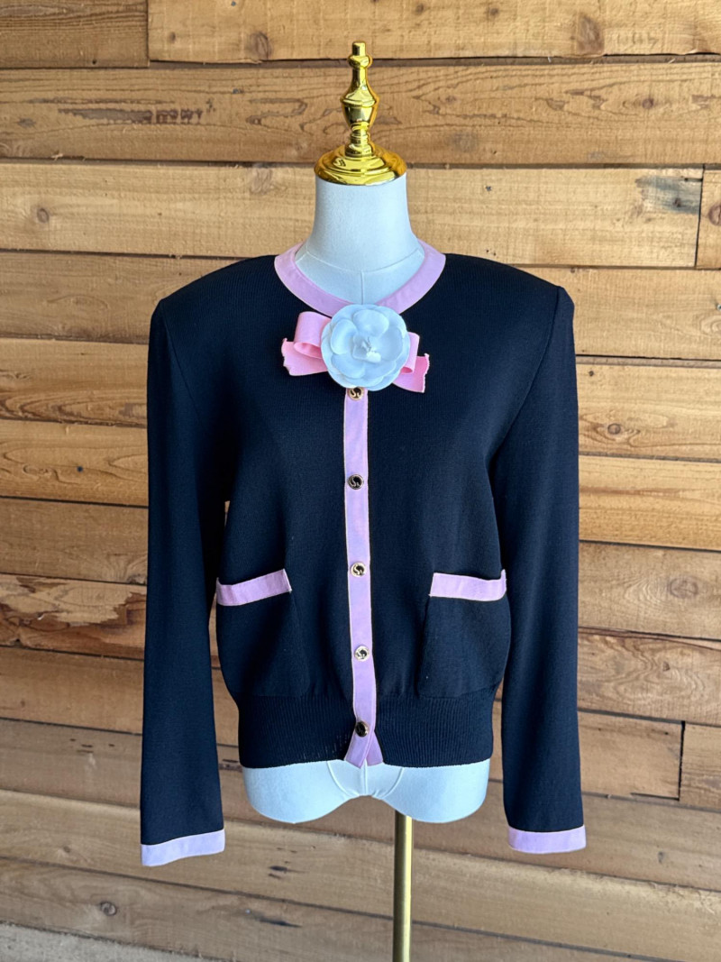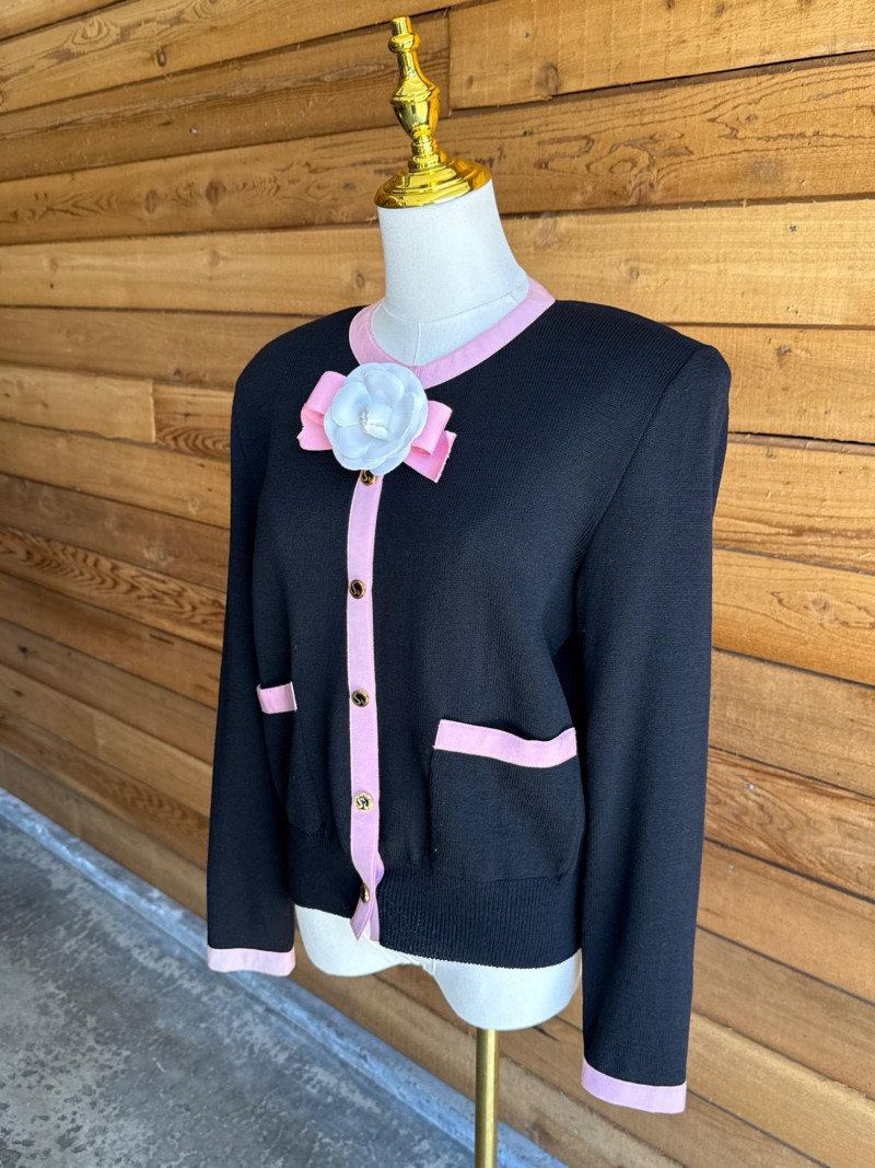 Lot # 141 - ST JOHN Black & Pink Sweater Jacket- Sz 8