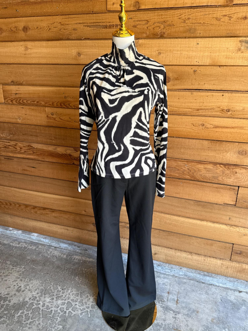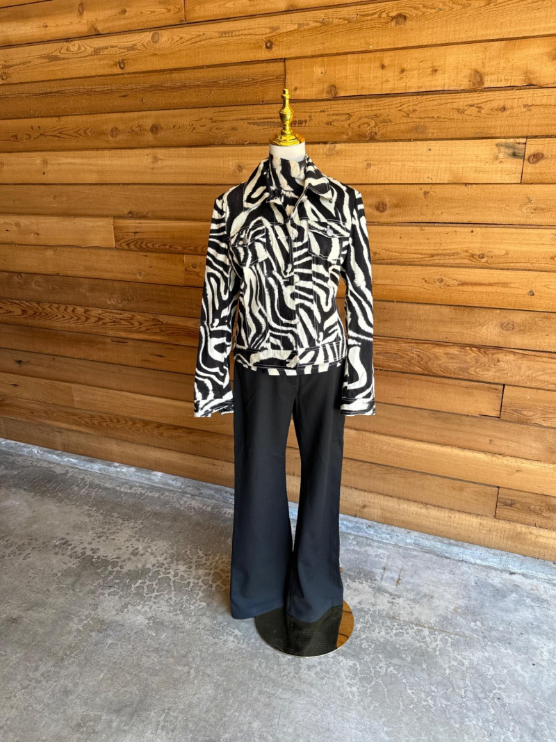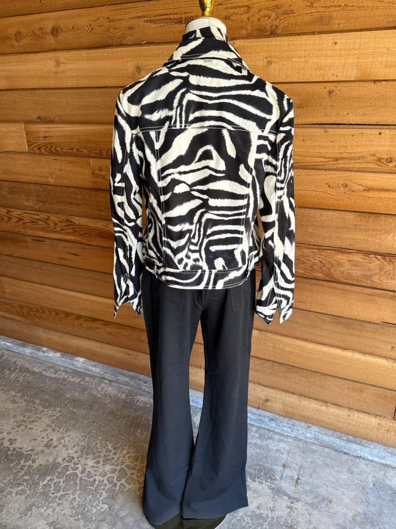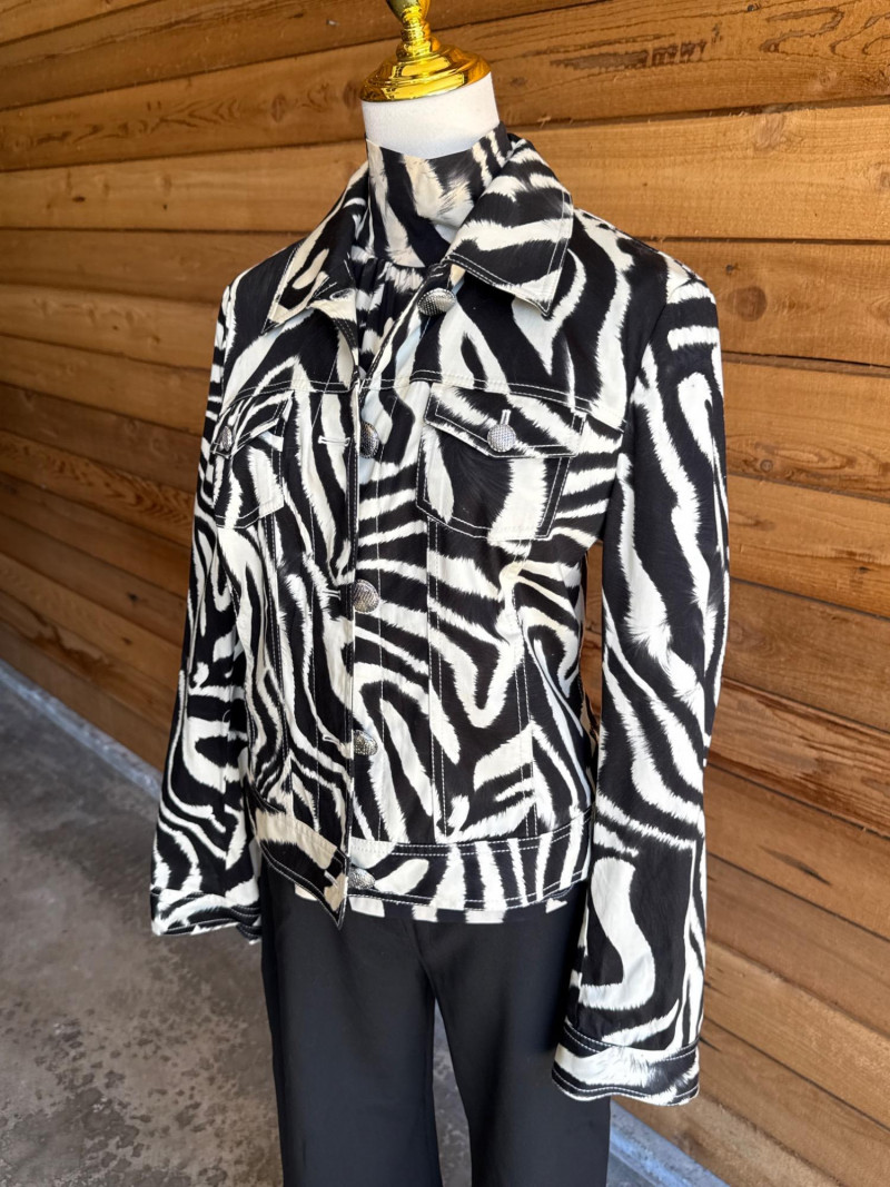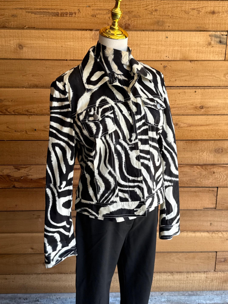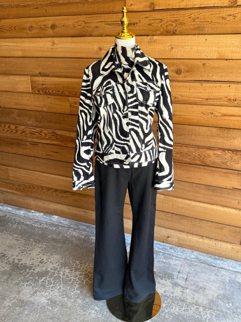 Lot # 145 - ST JOHN Sport Outfit- Zebra Top, Jacket w/ Black Denim- Sz 4/S