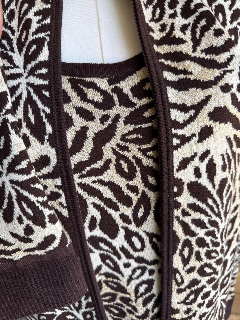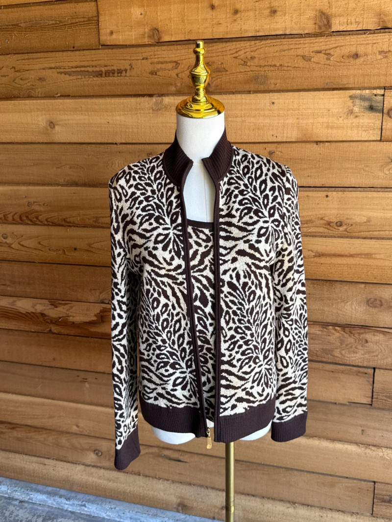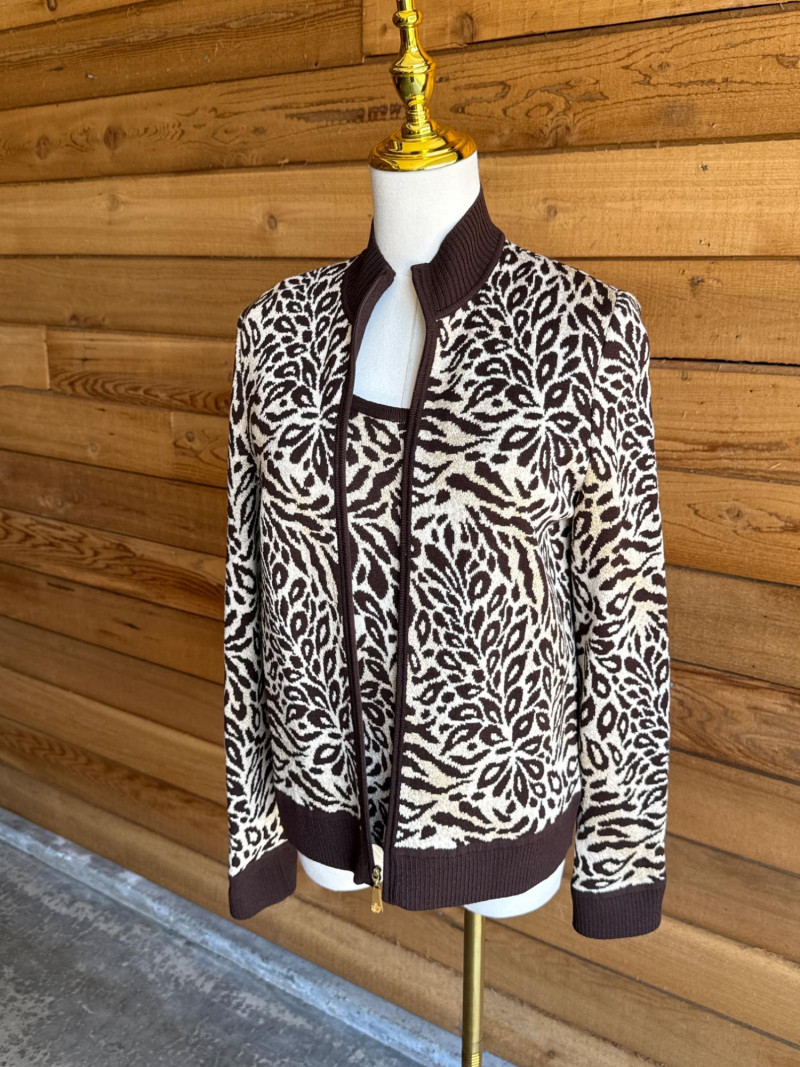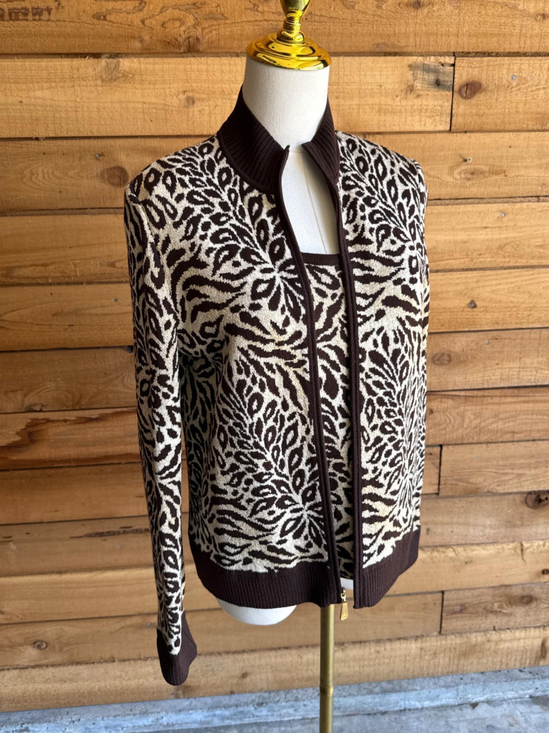 Lot # 152 - ST JOHN Brown & Gold Metallic Leopard Sweater Set- Sz P