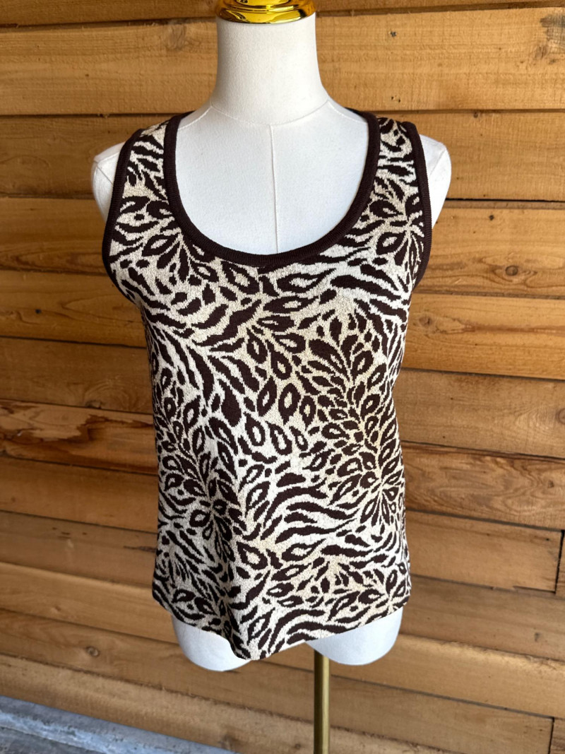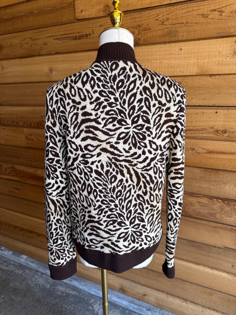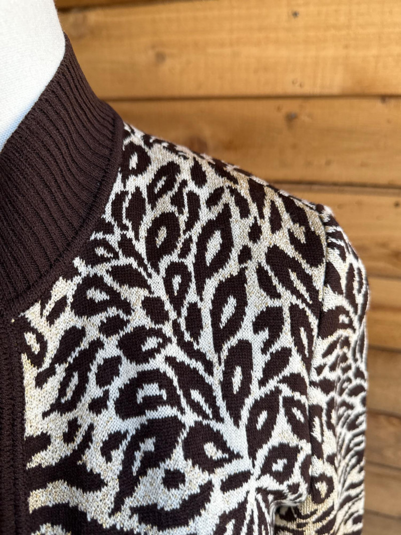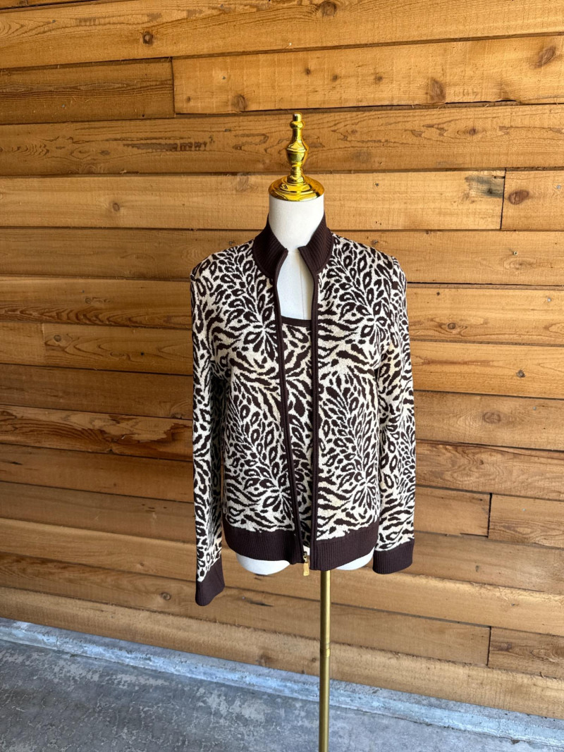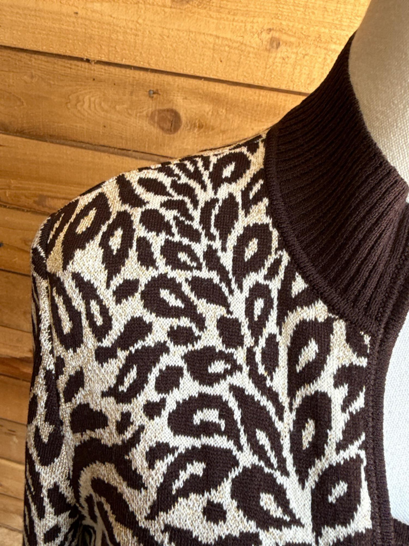 Lot # 152 - ST JOHN Brown & Gold Metallic Leopard Sweater Set- Sz P