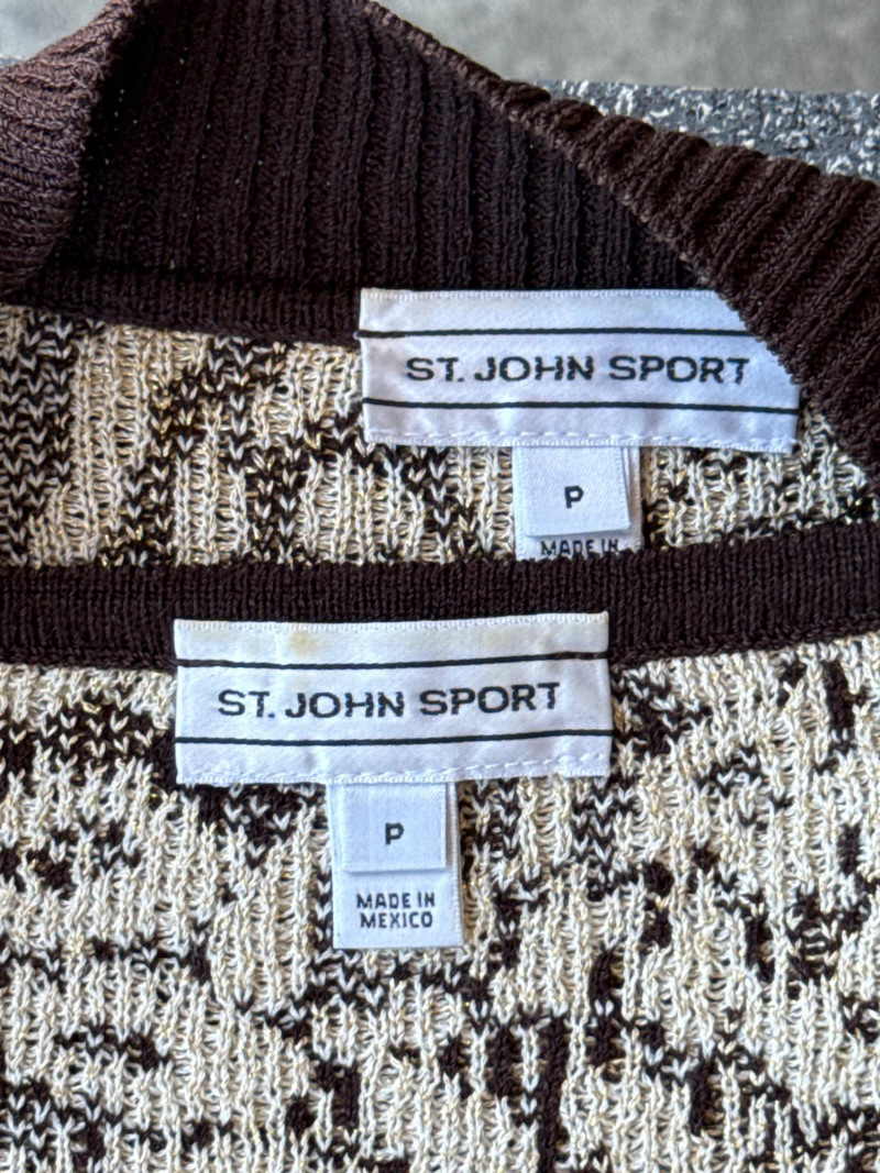 ST JOHN Brown & Gold Metallic Leopard Sweater Set- Sz P PLEASE NOTE DIFFERENT PICKUP TIMES THAN TYPICAL FOR SOUND ESTATE AUCTIONS Pickups will be Wednesday, July 30th and Thursday, July 31st, Saturday, August 2nd from 4-6pm (firm by 6pm on Thursday) If you can not make these times, PLEASE ask for alternate available times or shipping. Shipping times will be up to 2 weeks after auction closes. Please call/text Jessica 253-350-0864 *All items will need to be collected by August 15