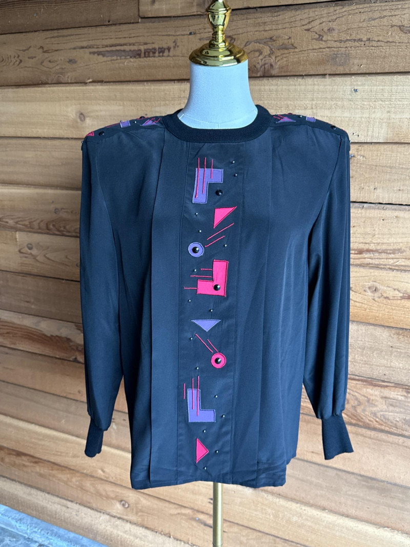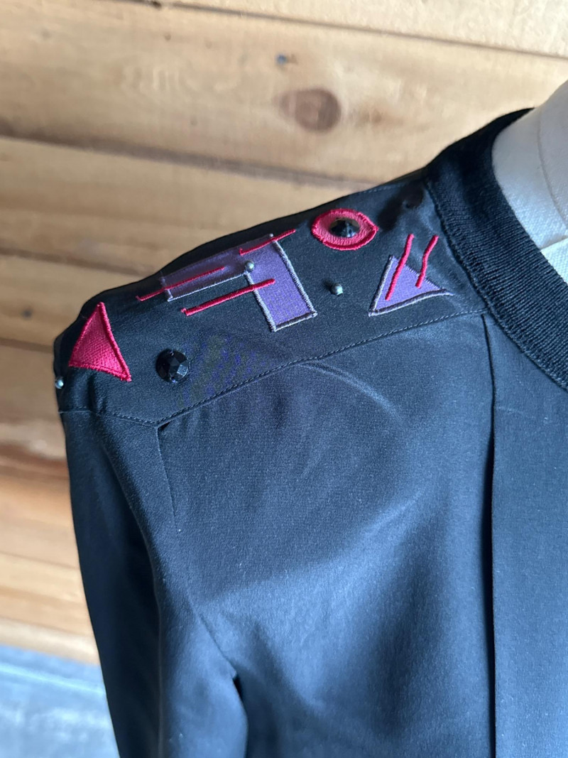 Lot # 161 - Vintage COURTNEY RHODES Black Silk Blouse w/ Beads - Sz 4