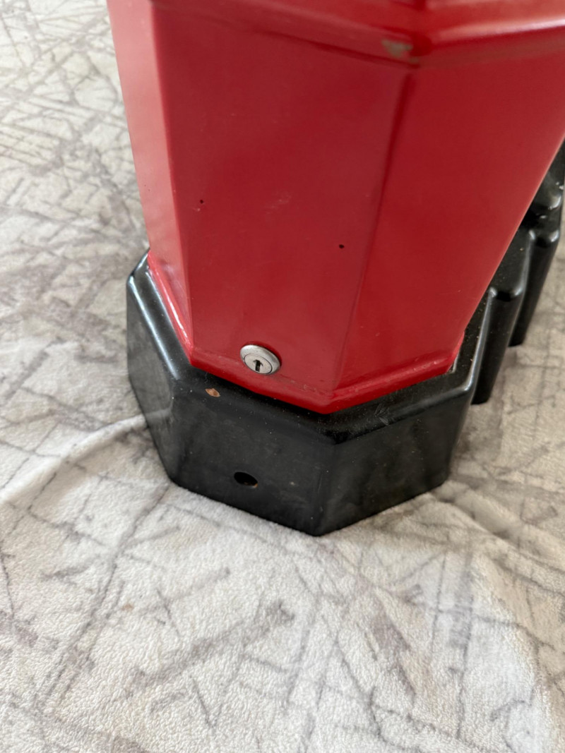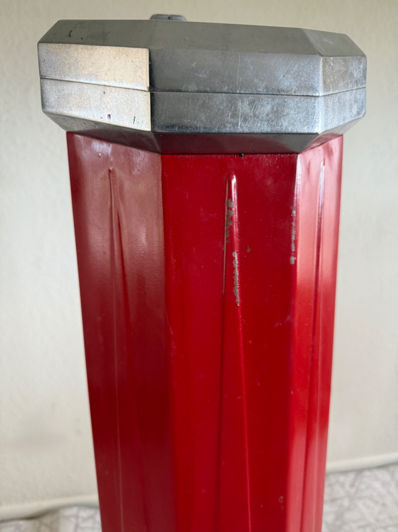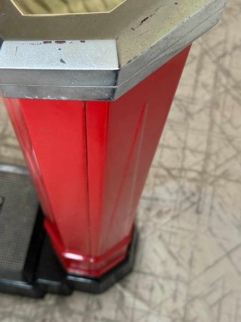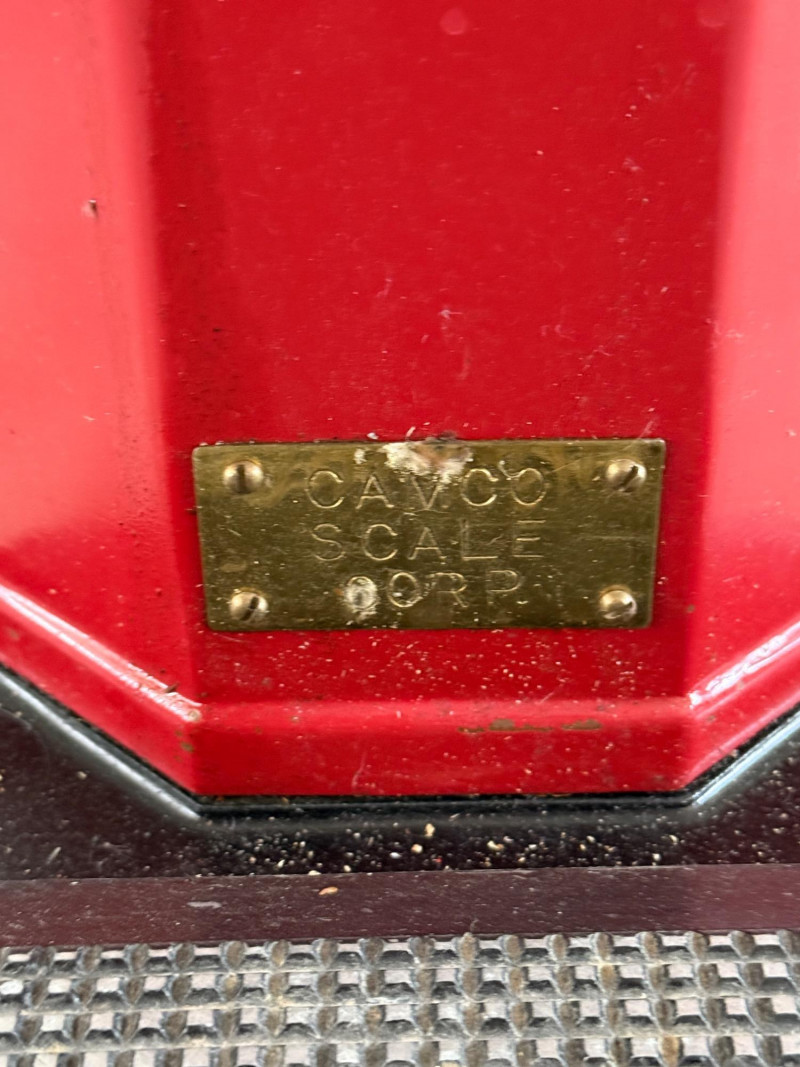 Vintage CAMCO “Little Giant” Penny Scale – Cast Iron with Red Column Offered here is a rare CAMCO Little Giant penny scale, manufactured by Camco Scale Corp., a company known for their durable commercial scales in the mid-20th century. This piece features a bold red octagonal column, chrome accents, and a cast iron base marked with the original raised CAMCO branding. Key Features: Manufacturer: CAMCO Scale Corp., U.S.A. Model: Little Giant Era: Likely 1930s–1950s Construction: Cast iron base and column, metal dial, and chrome details Function: Originally used in public places like pharmacies and bus stations; operated with a penny to display weight Condition: Displays very well with bright red paint and readable faceplate; some wear and patina consistent with age. Untested for functionality. Dimensions: Approximately 13" W x 21" D x 42" Rarity & Value: Estimated value (based on market comps): $300–$600, depending on working condition and local demand. Collectors value them for both nostalgic charm and industrial design appeal—often used as decorative statement pieces in vintage-themed interiors or businesses. A standout piece of Americana and functional industrial art