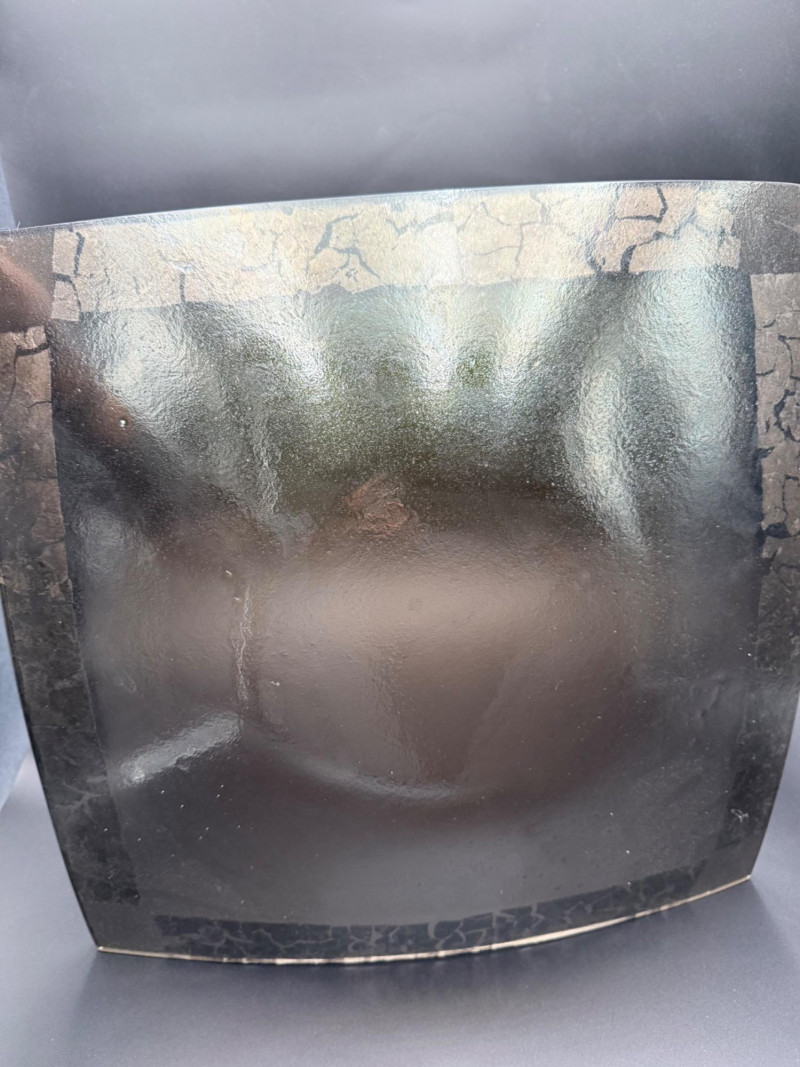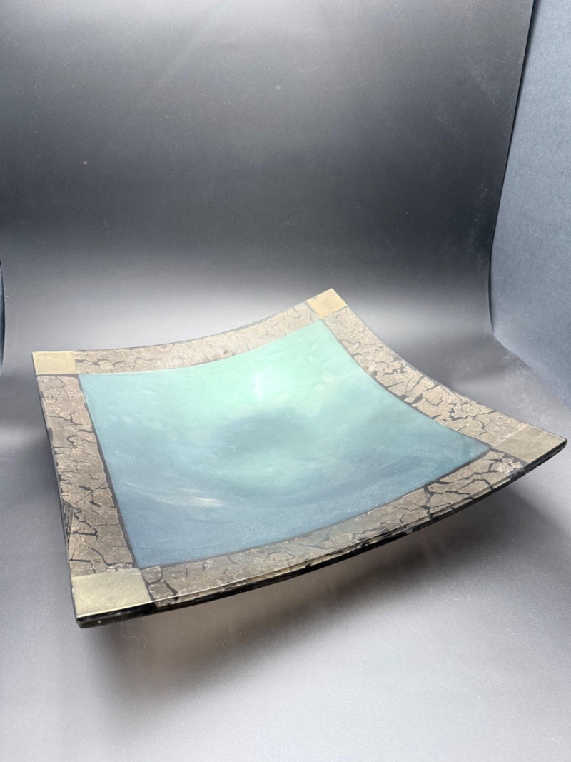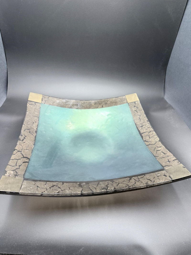 Lot # 8 - Square Textured Art Glass Bowl with Crackle Border