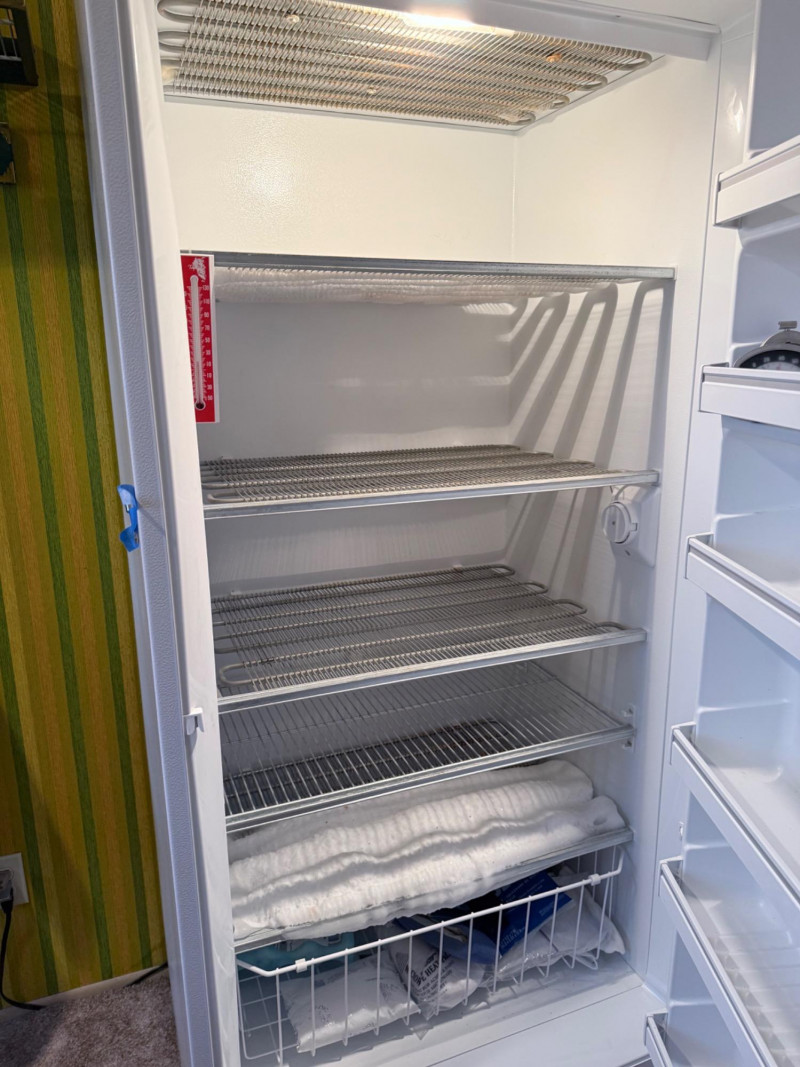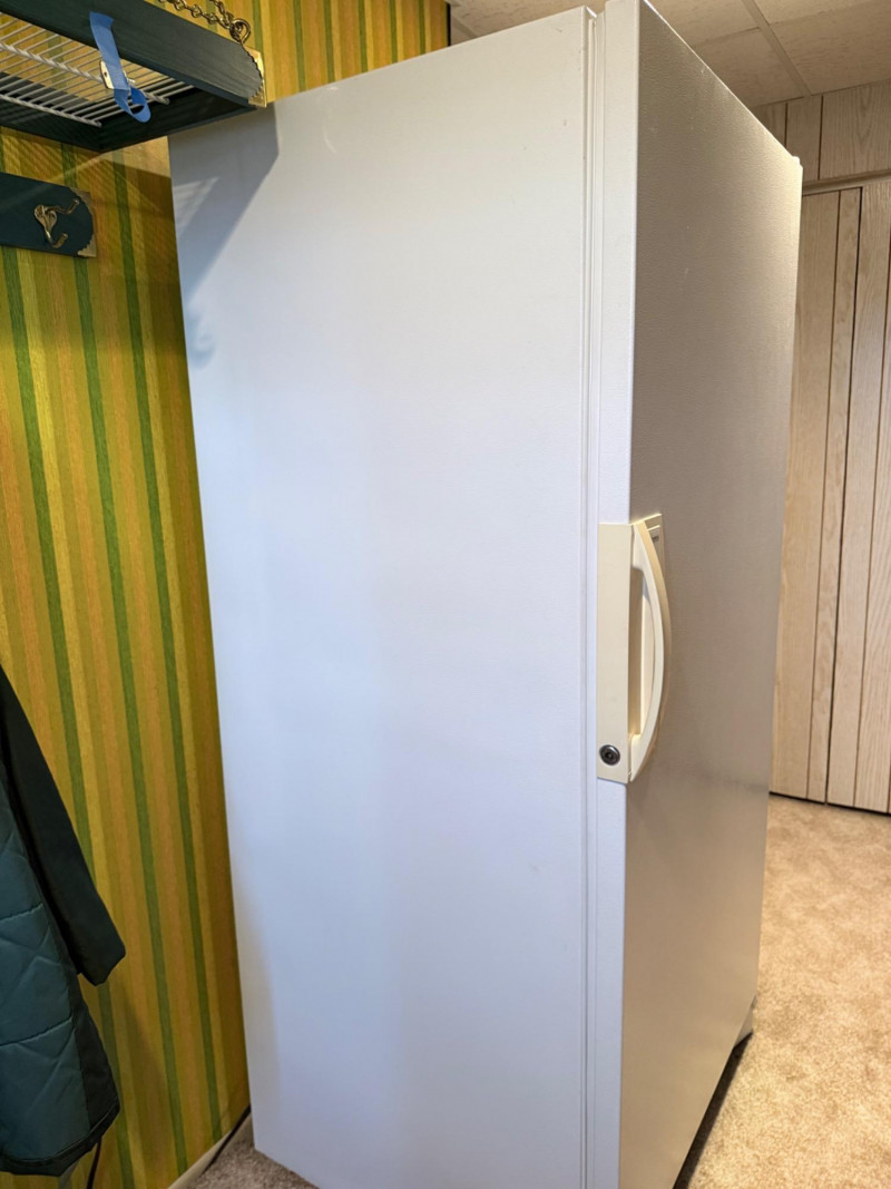 Kenmore Upright Freezer – 70” Tall with Key Dependable and spacious, this Kenmore upright freezer offers generous interior storage with multiple wire shelves and in-door compartments—perfect for garage overflow, bulk storage, or large households. Details: Brand: Kenmore Dimensions: Approx. 70" H x 32" W x 28.5" D Style: Upright single-door freezer Interior Features: 5 heavy-duty wire shelves 1 lower basket bin 5 in-door shelves Locking Door: Comes with key Condition: Clean and in working condition with minor cosmetic wear This reliable freezer combines functionality with the trusted durability of Kenmore appliances. Ideal for home use, food preservation, or emergency prep storage. Buyer must bring assistance for transport. The freezer is near a back door that leads to a gravel driveway where you can park your vehicle. You will need to bring a dolly or some way to move this heavy appliance.