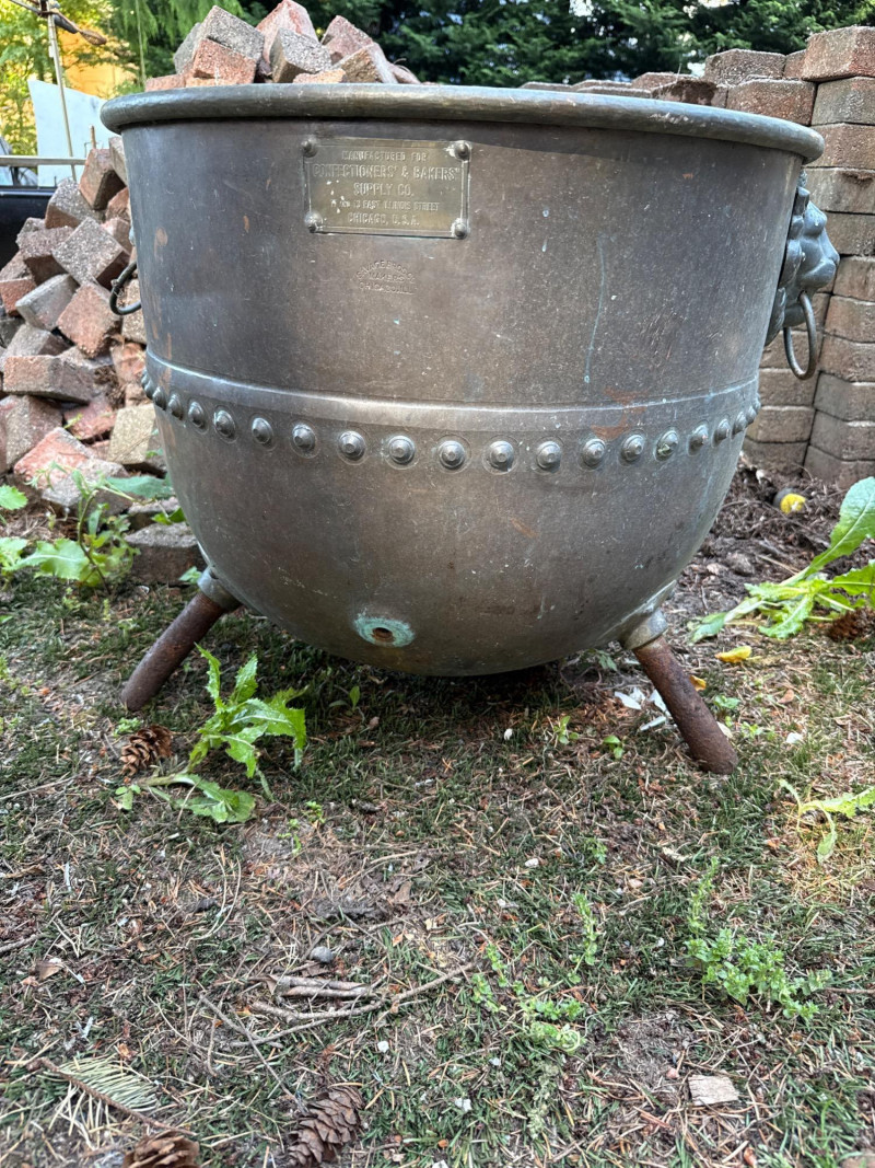 Lot # 19 - Savage Bro's Copper and Brass Confectioners and Bakers Pot with Legs