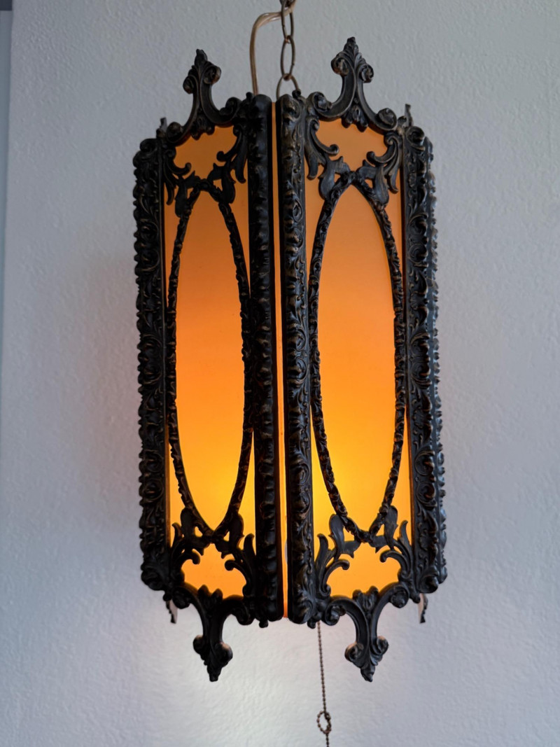 Lot # 106 - Vintage Hanging Light with Ornate Frame Plug In