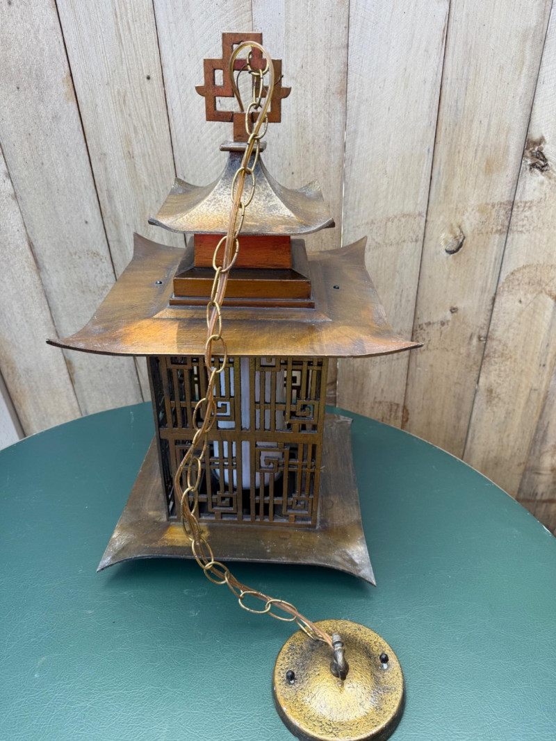 Lot # 5 - Vintage Chinoiserie Pagoda Pendant Light, Patina, Est. Value $1,300+