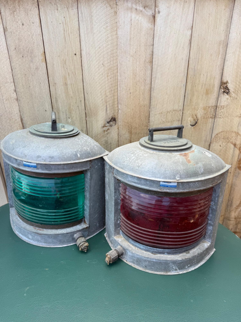 Lot # 28 - Pair Vintage Perko Marine Navigation Lights - Red & Green Lanterns