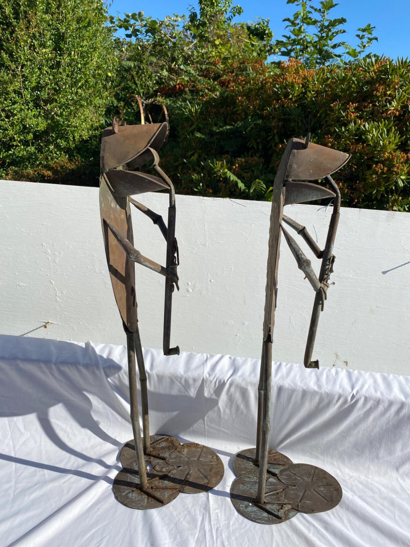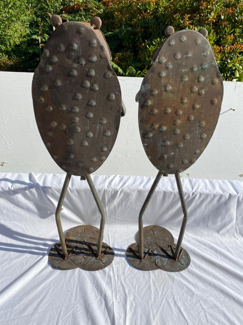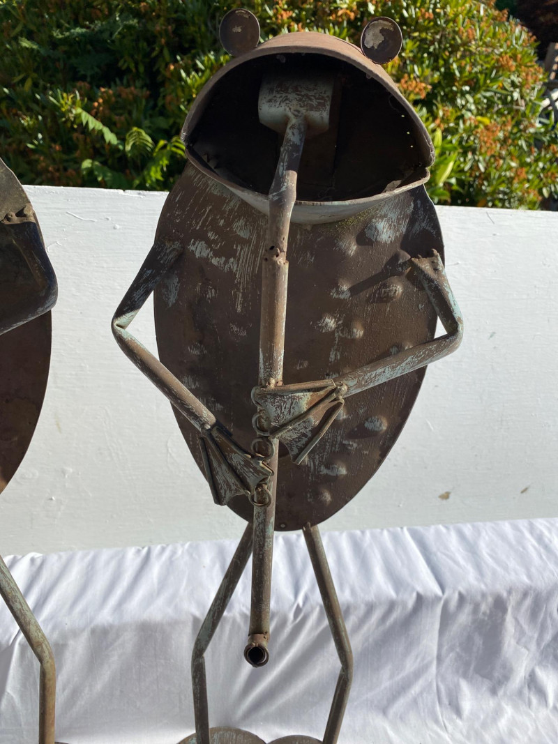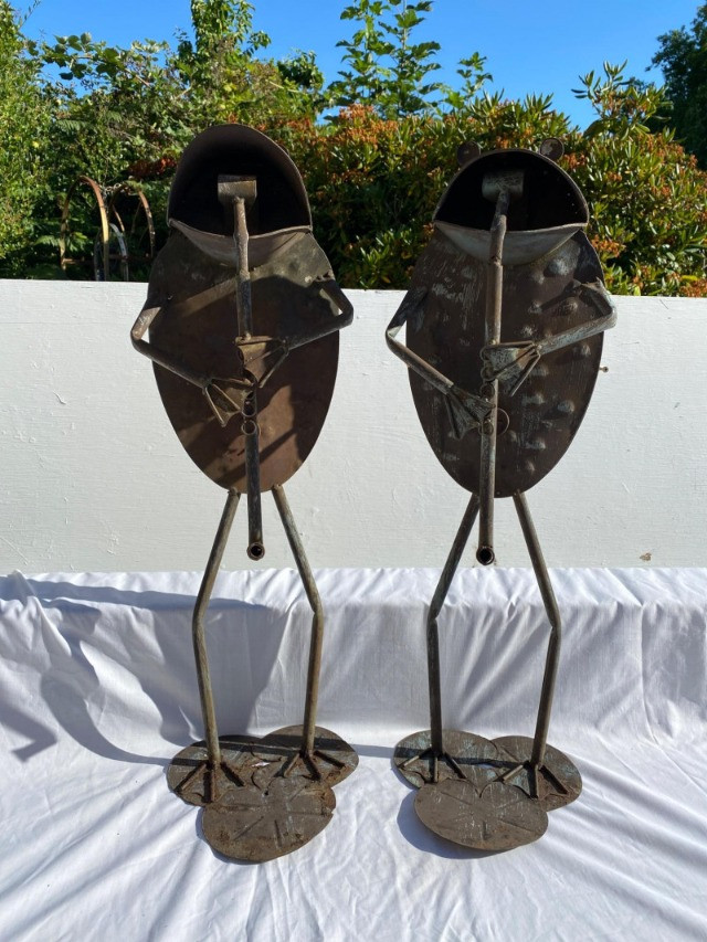 These two frog musicians will make beautiful music in your yard. Two frogs mid-performance with saxophones, full of personality and charm. Ideal for garden whimsy or music-themed décor.