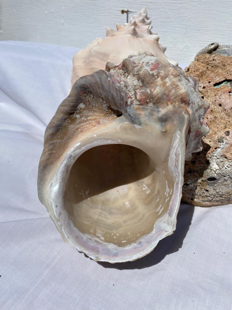 “A Whisper from the Shoreline” The largest shell measures 9½" by 6½"—a substantial slice of seaside charm, perfect for décor, crafting, or simply daydreaming about coastal escapes. Whether you see a mermaid’s mailbox or nature’s own sculpture, this shell brings a touch of tidepool tranquility to your concrete jungle. Largest shell measures 9 1/2 by 6 1/2 inches