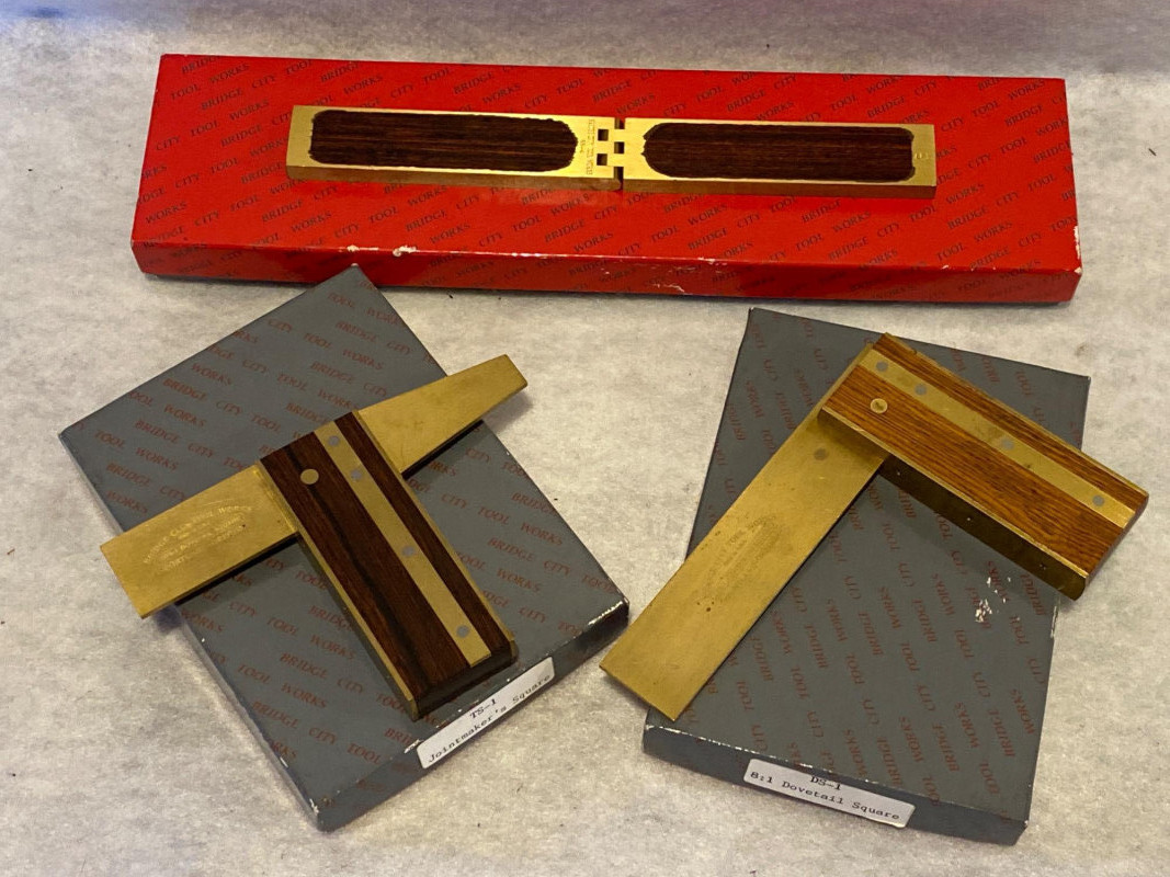 “Three precision tools, zero tolerance for sloppy angles” Includes a Joiner’s Square, an 811 Dovetail Square, and one mystery tool that’s probably judging your miters. Brass and wood construction, boxed and ready to make your workshop look smarter than you feel. Perfect for woodworkers, collectors, and anyone who likes their geometry artisanal.