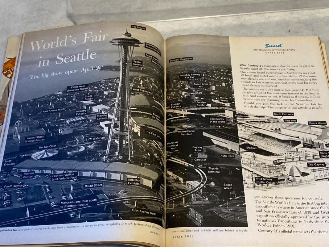 “Everything but the monorail” This 23-piece time capsule includes magazines, guidebooks, tickets, pins, a record, a glass, a medallion, and even a hospitality log—because nothing says “World’s Fair” like organized friendliness. From the Space Needle to wildflowers, it’s a whirlwind tour of Seattle’s atomic optimism, all packed into one glorious lot. Perfect for collectors, nostalgics, and anyone who thinks the future peaked in 1962.