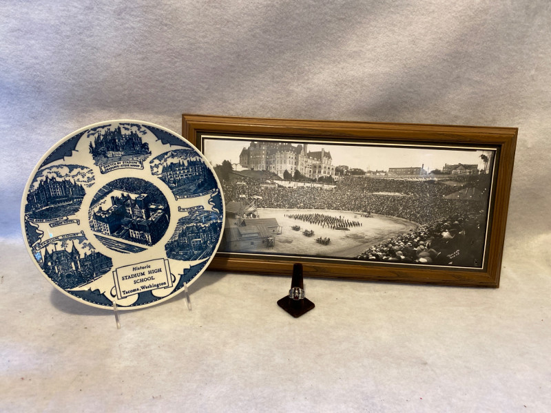 Lot # 76 - Stadium High School Collectibles – 1926 Class Ring, Plate & Photo