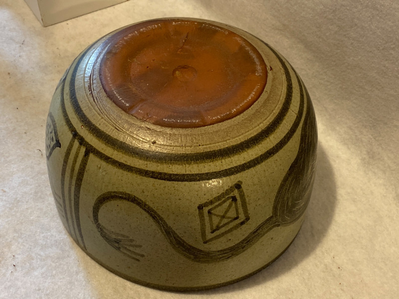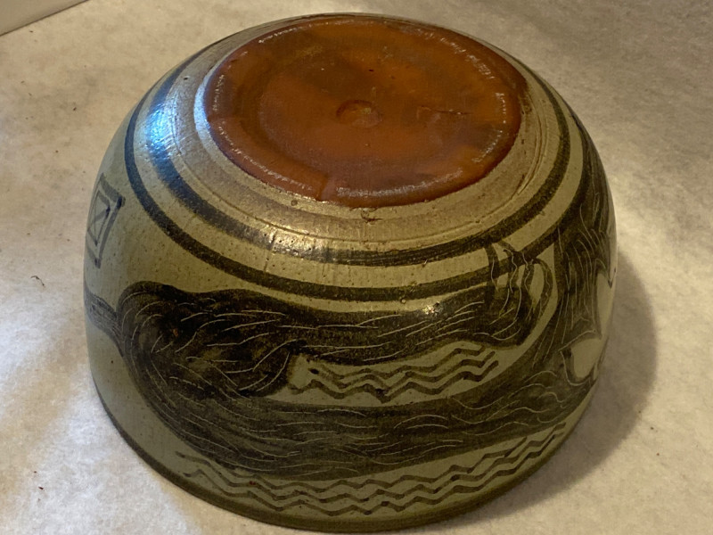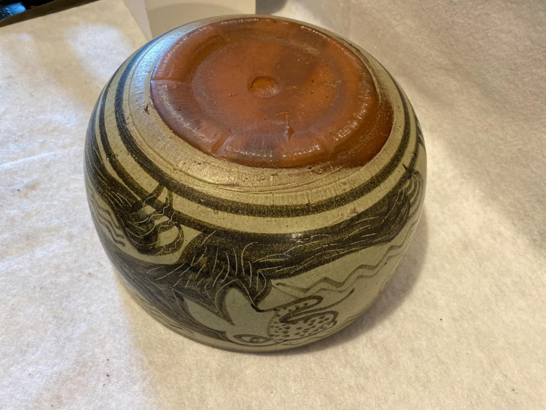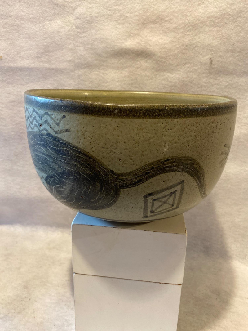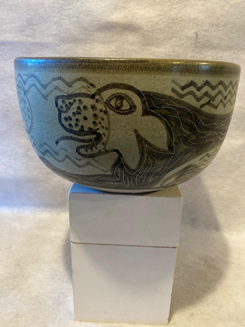Lot # 77 - Studio Pottery Bowl with Stylized Lion – 11" Diameter × 6¼" Tall