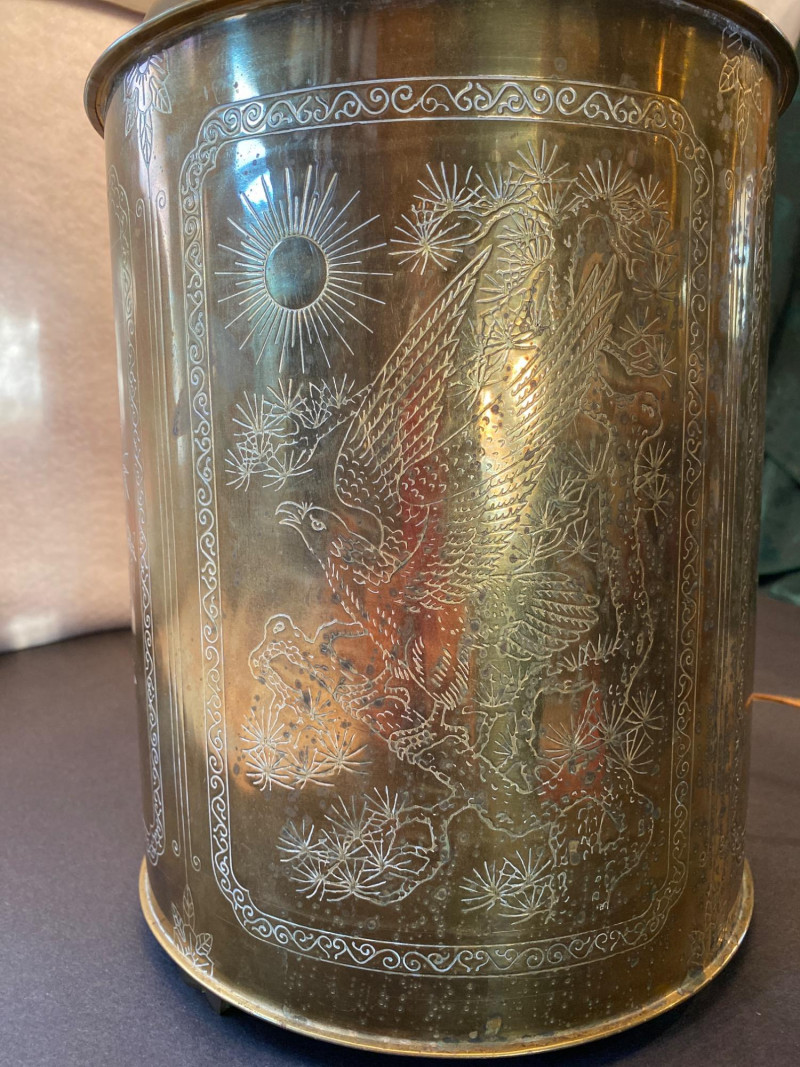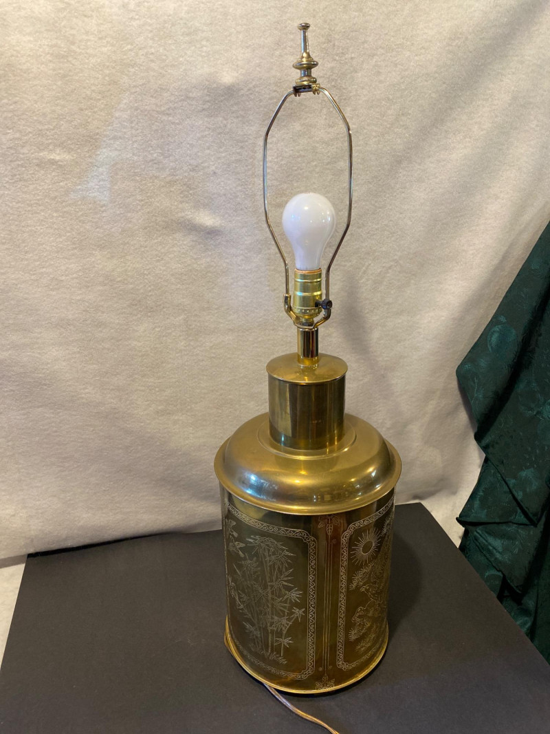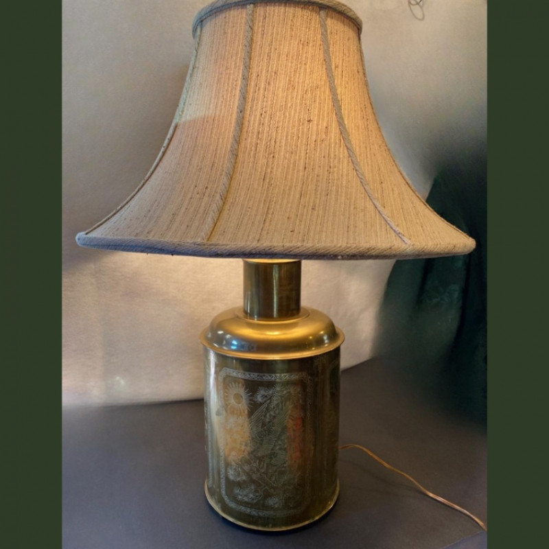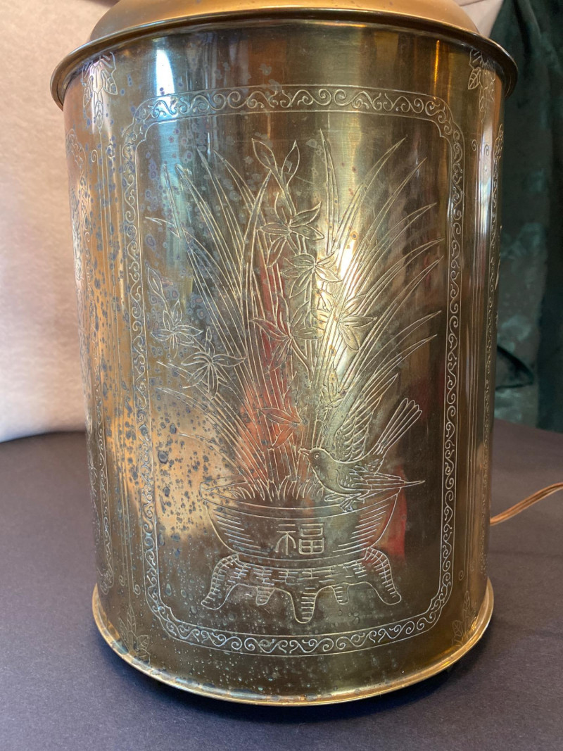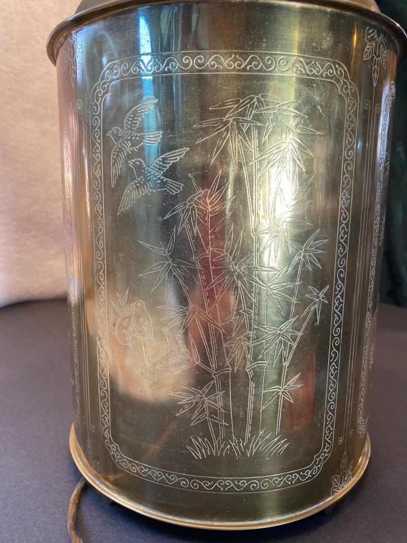 Lot # 95 - Lamp of Etched Whispers - Vintage Solid Brass with Engraved Panels