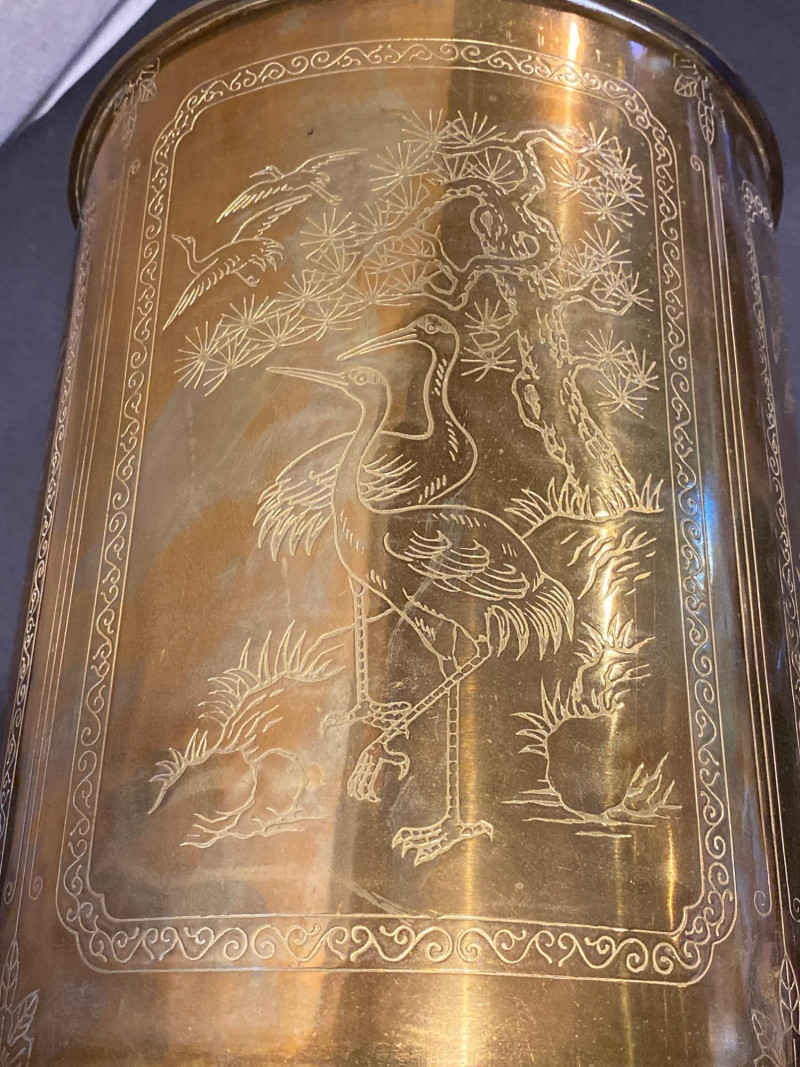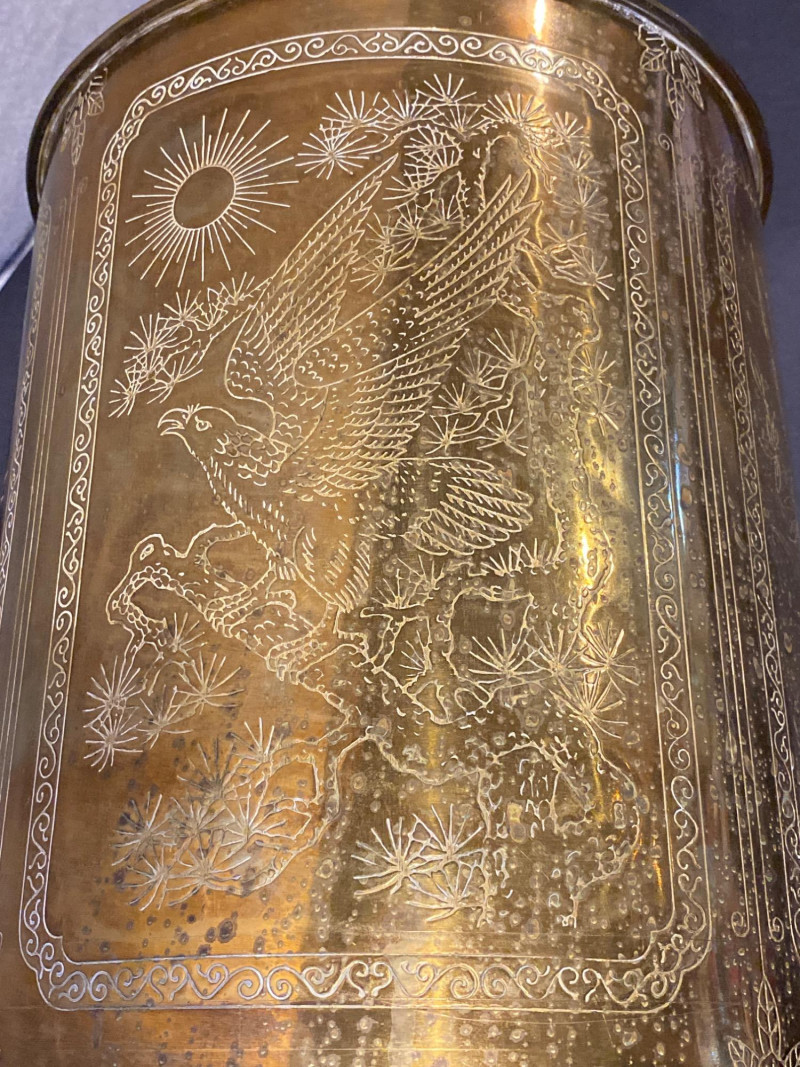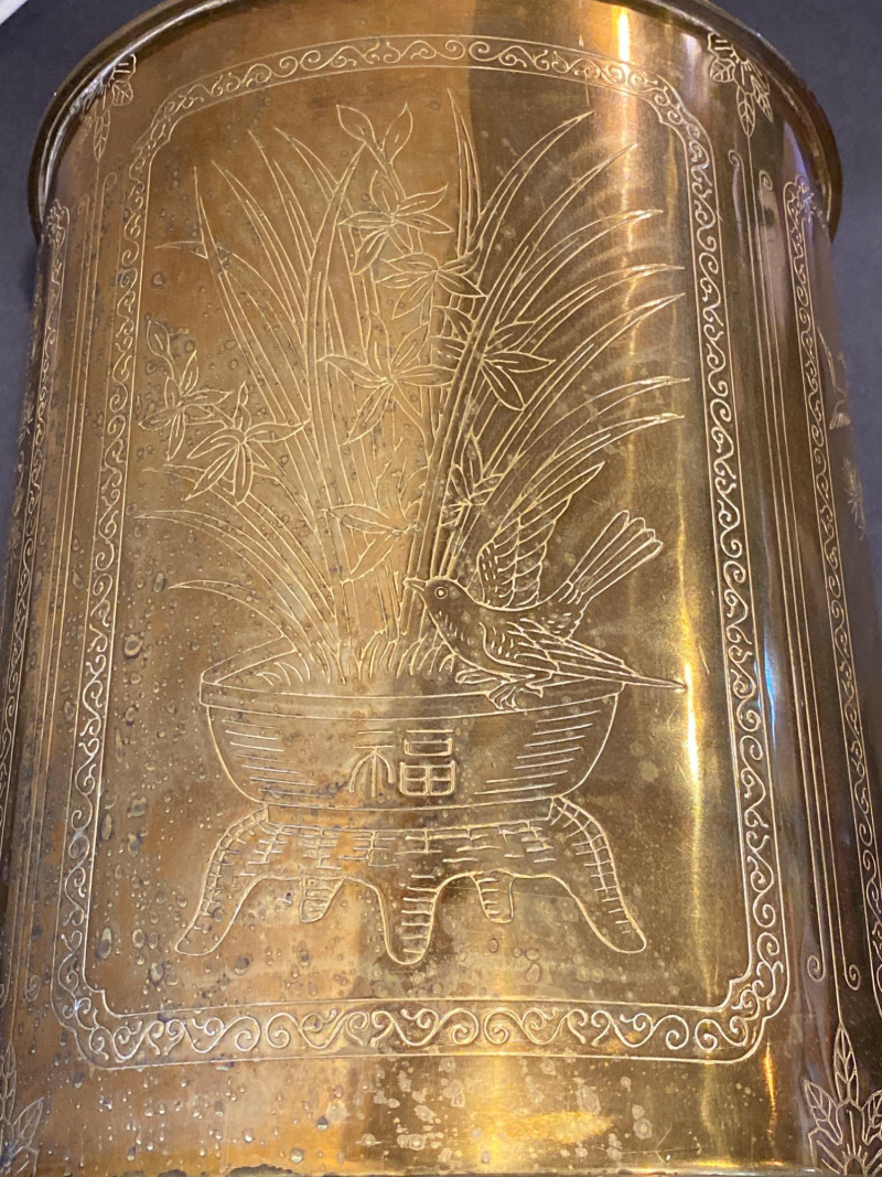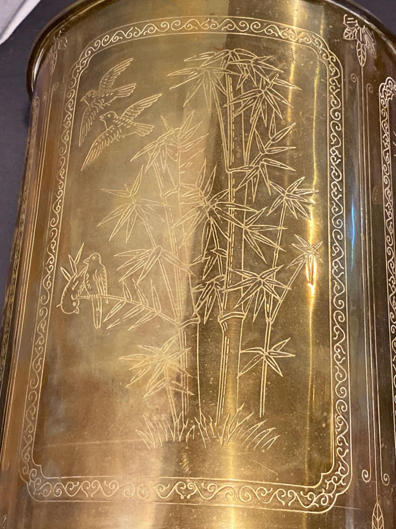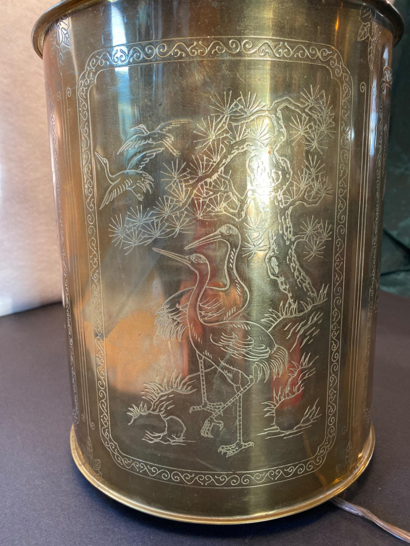 Lot # 95 - Lamp of Etched Whispers - Vintage Solid Brass with Engraved Panels