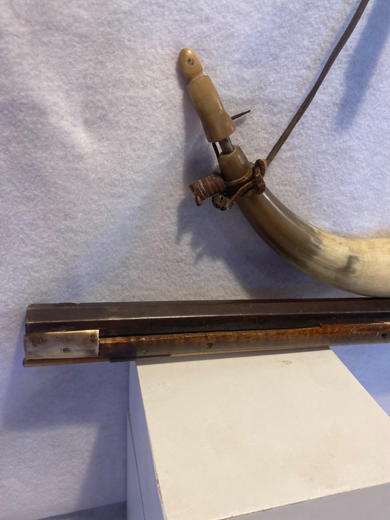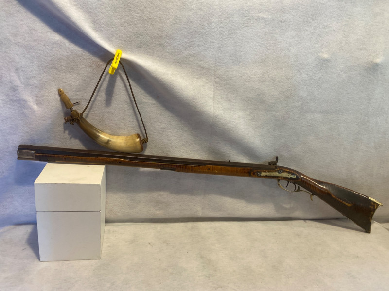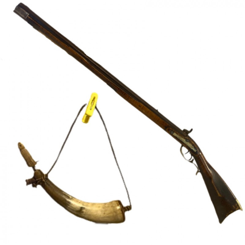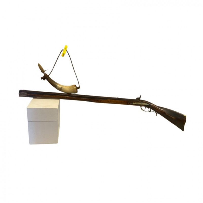 Lot # 98 - Antique Flintlock Rifle with Powder Keg – Pre-1898, 43¾" Long