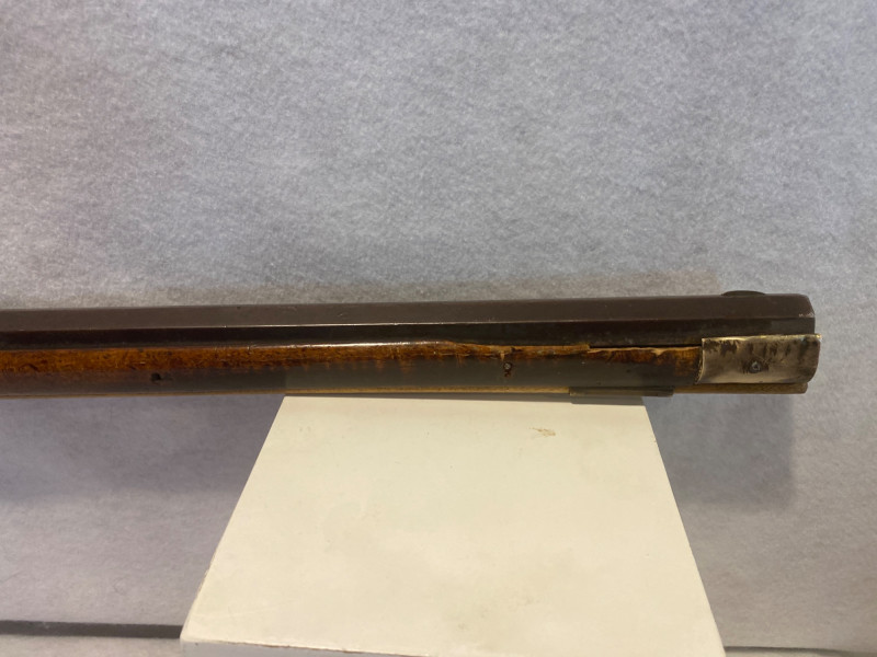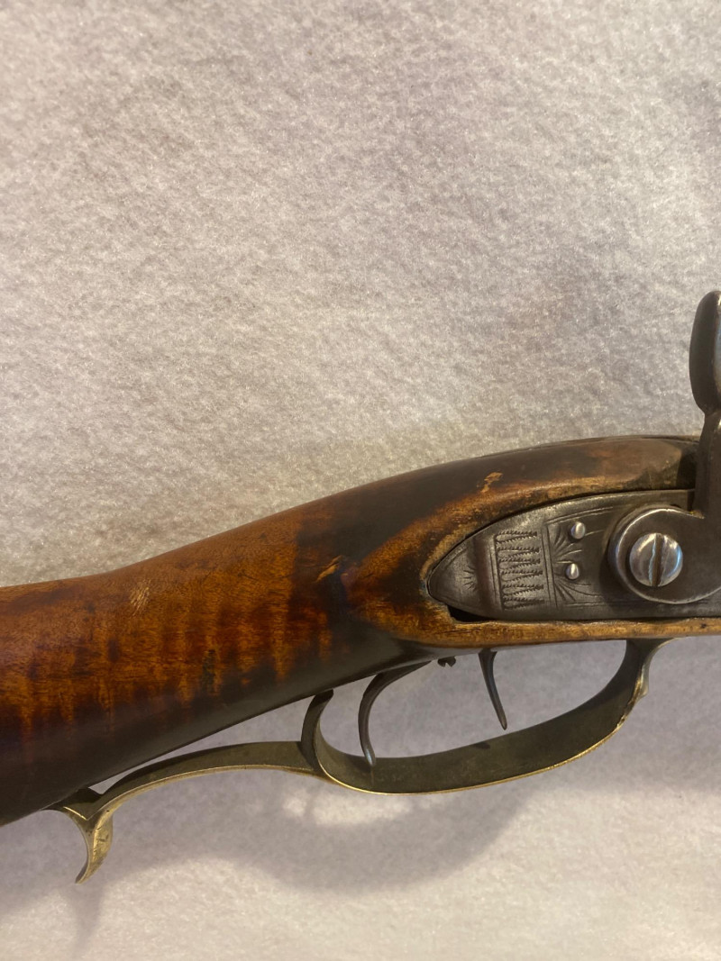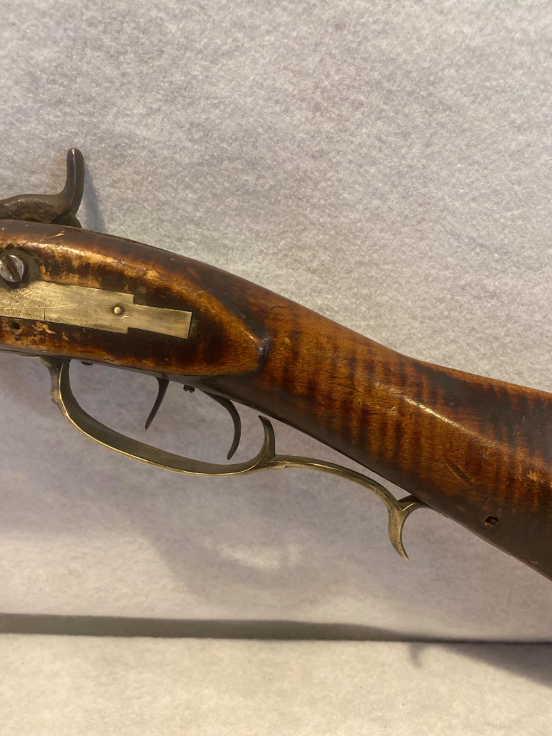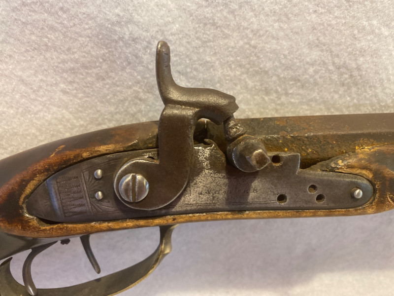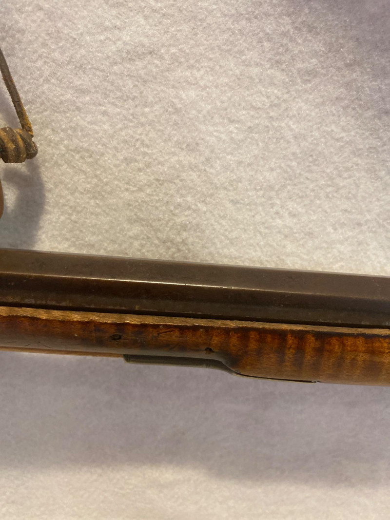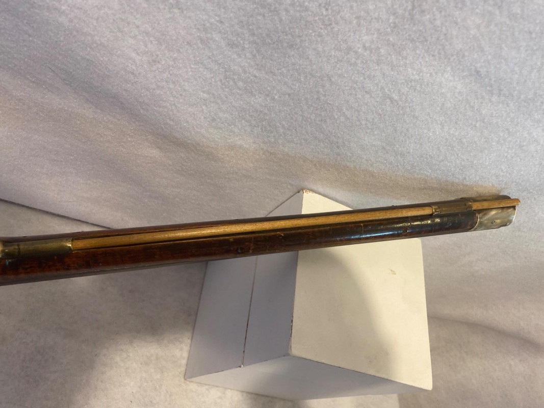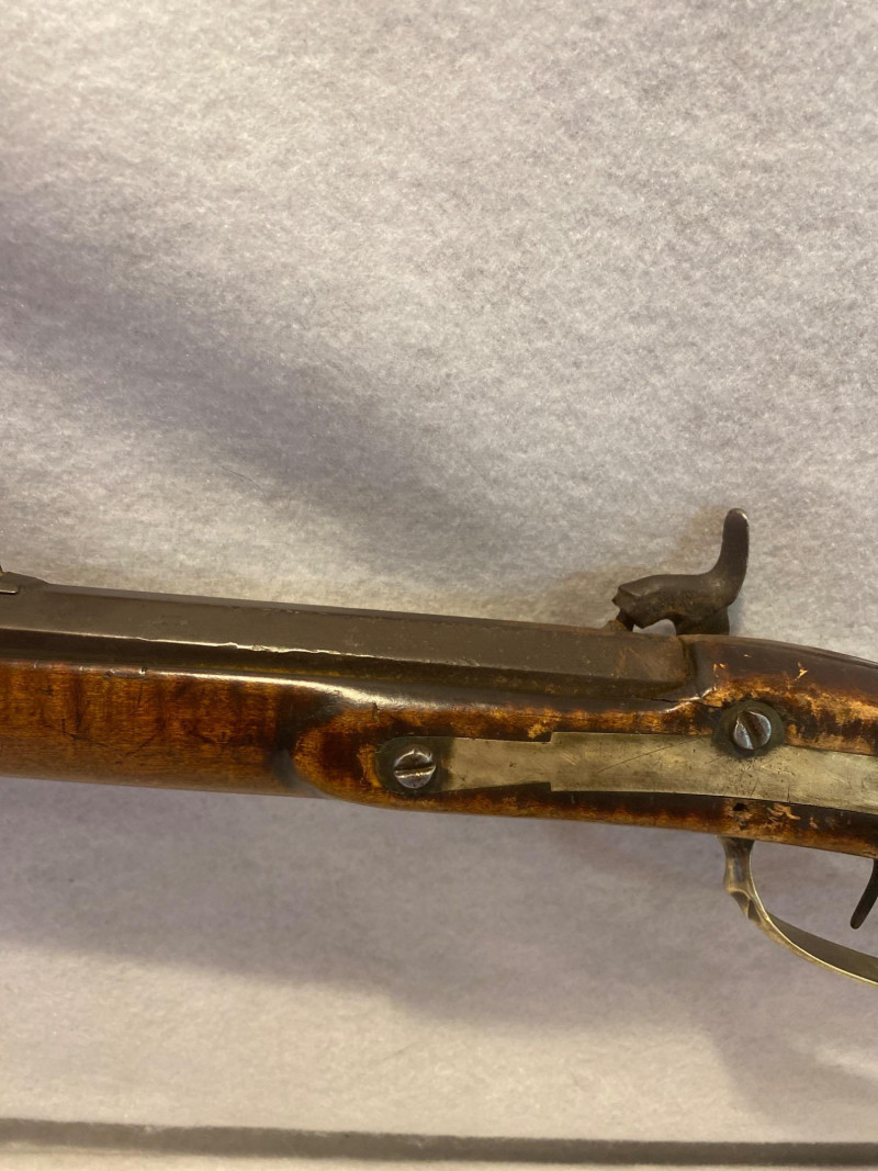 A true relic of early firearms history, this flintlock rifle measures 43¾ inches in length and was manufactured before 1898. The maker’s name is present but unreadable, adding a layer of mystery to its provenance. Era: Pre-1898 Length: 43¾ inches Condition: Unverified; sold as-is