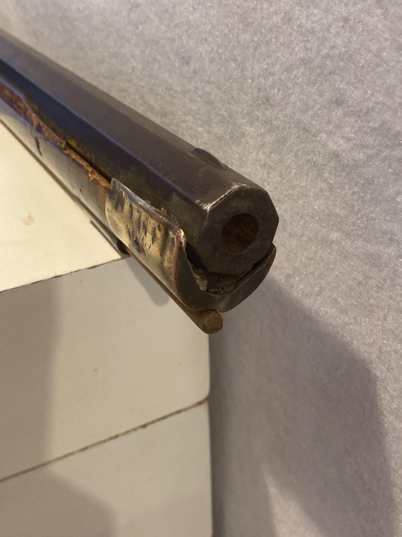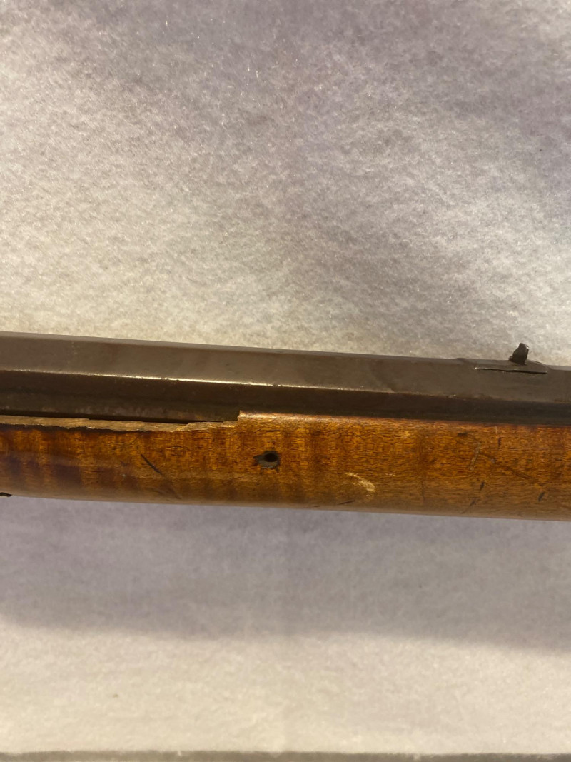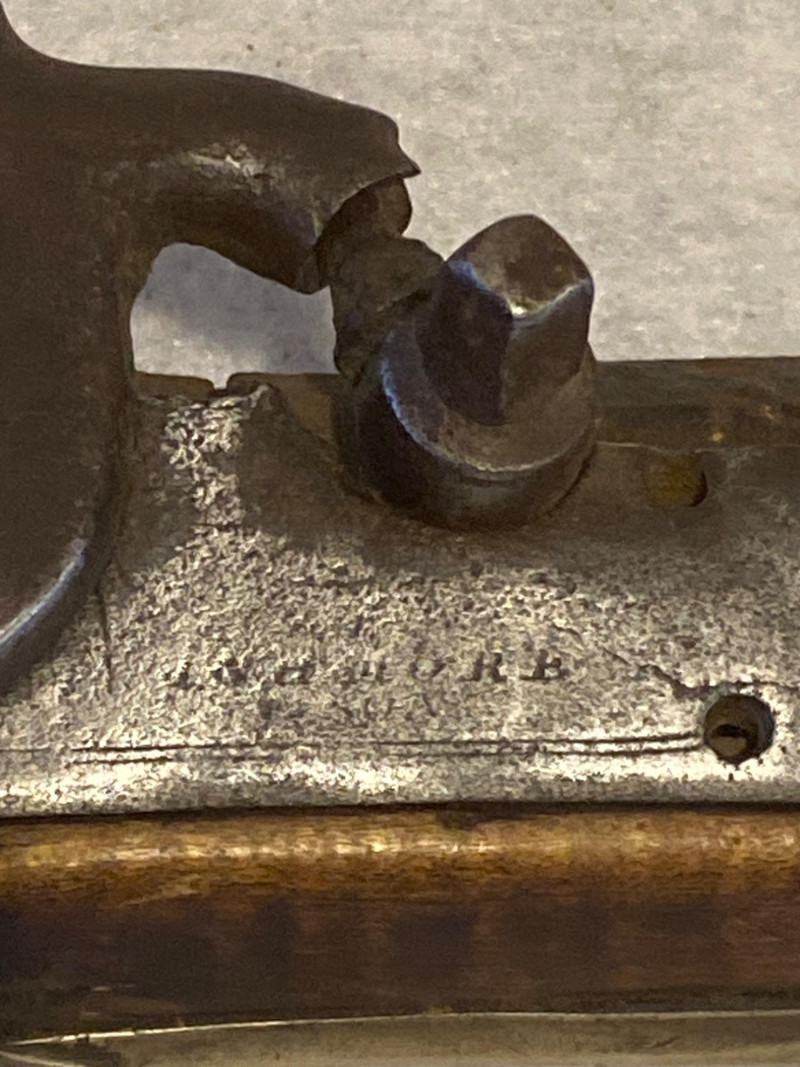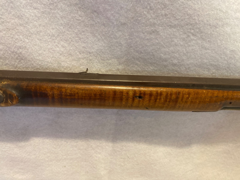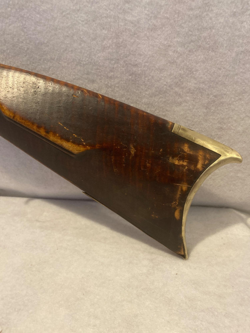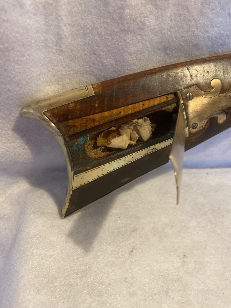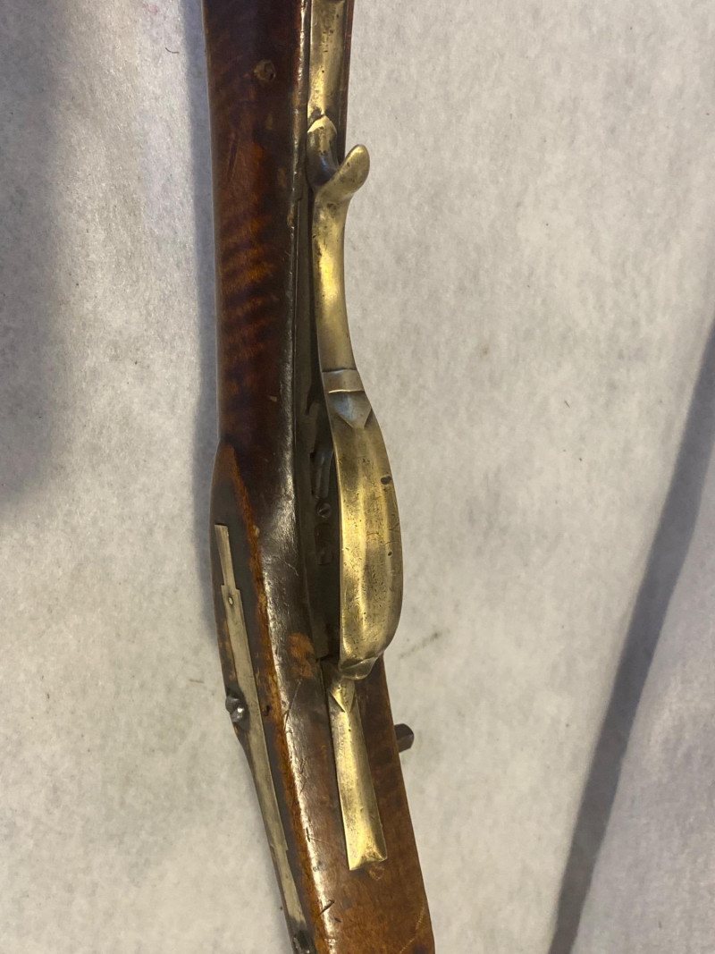 A true relic of early firearms history, this flintlock rifle measures 43¾ inches in length and was manufactured before 1898. The maker’s name is present but unreadable, adding a layer of mystery to its provenance. Era: Pre-1898 Length: 43¾ inches Condition: Unverified; sold as-is